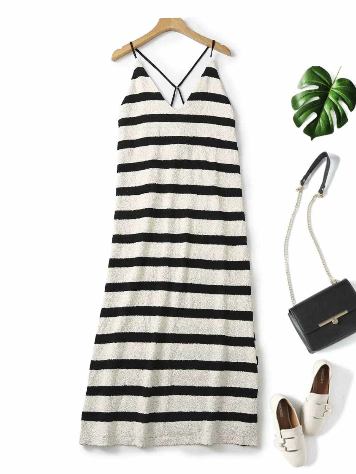 | nameOriginal | Summer cotton blend thick stripe niche suspender dress |