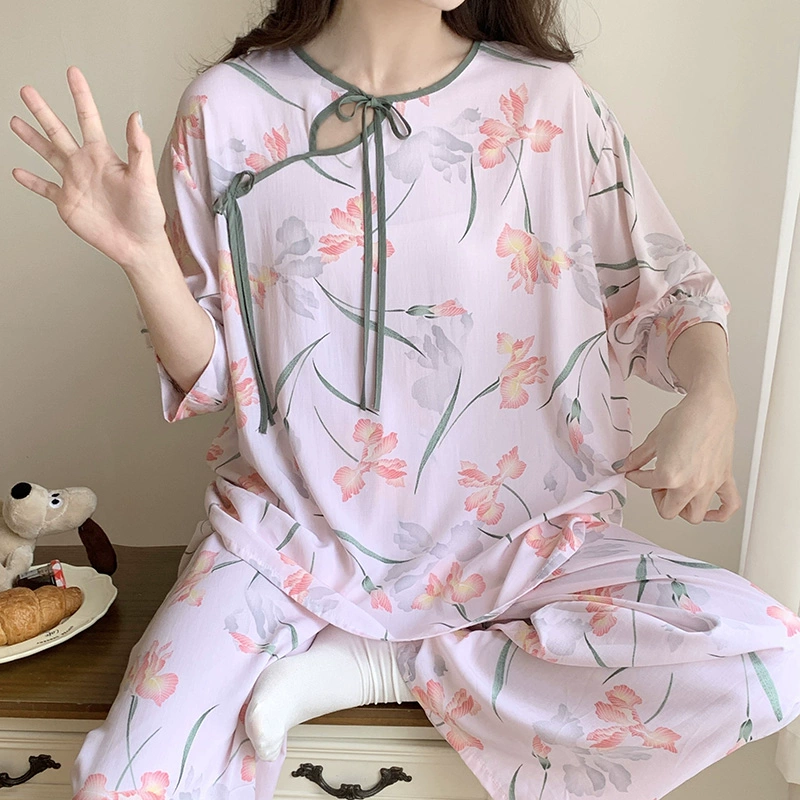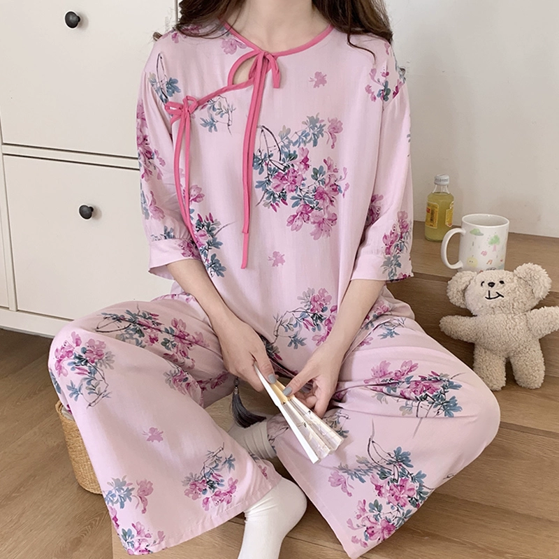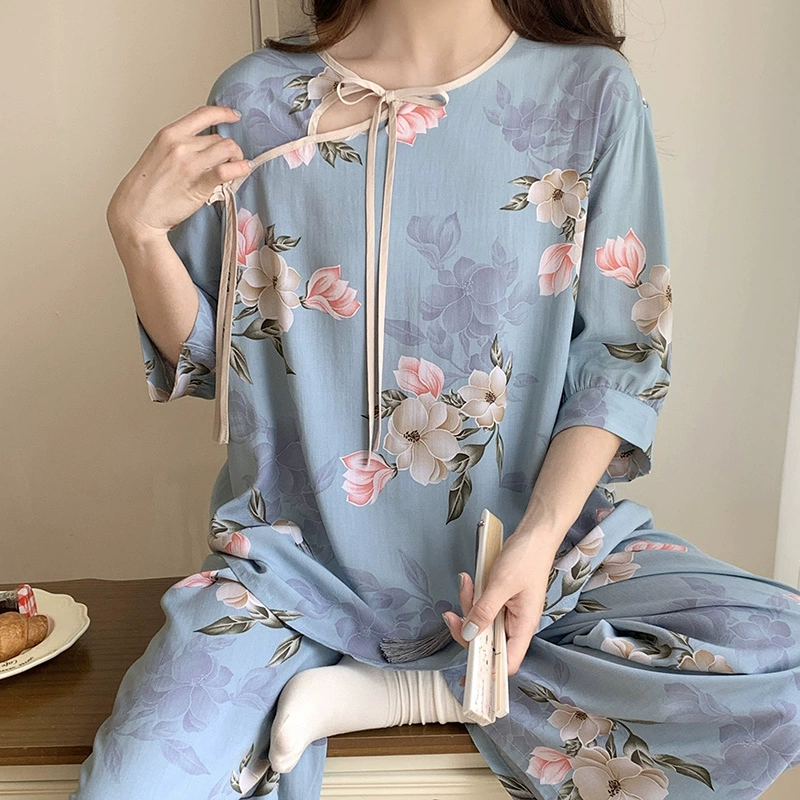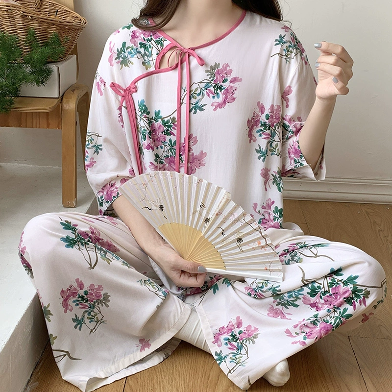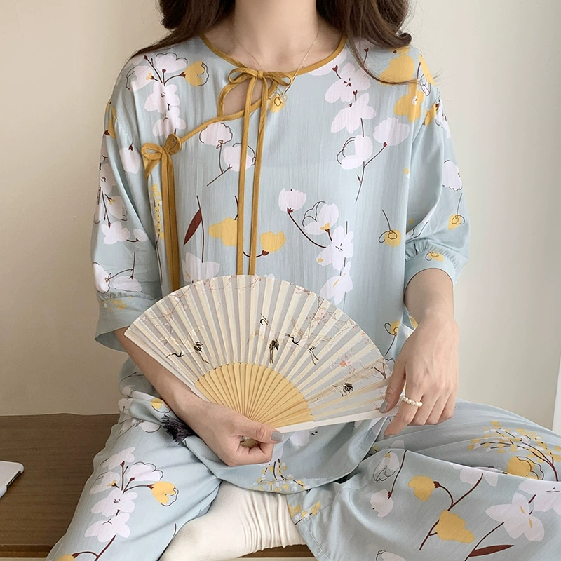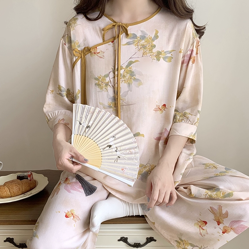 | nameOriginal | Summer cotton silk women's Chinese style home wear improved cheongsam pajamas |