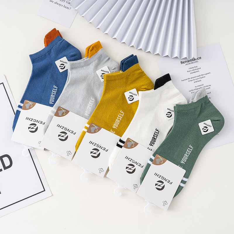 | nameOriginal | Summer cotton socks men's sports mesh men's boat Socks solid color socks sweat absorbent breathable factory socks wholesale |