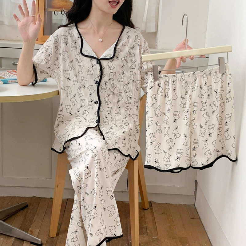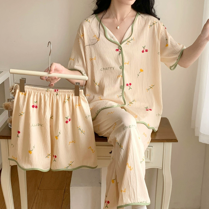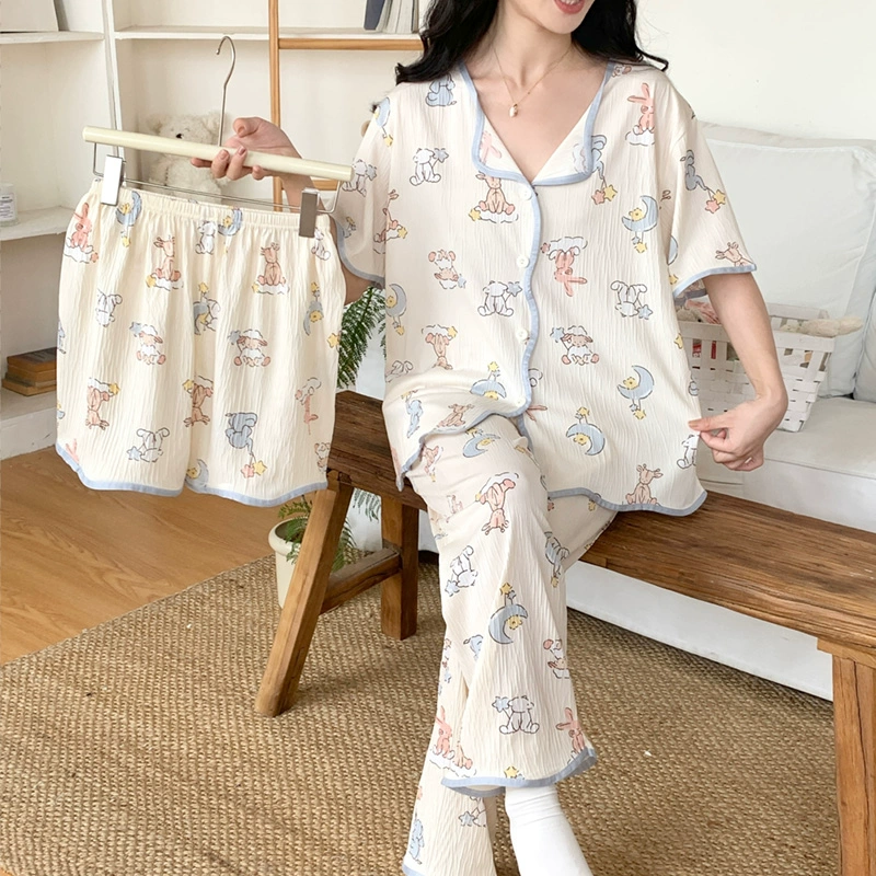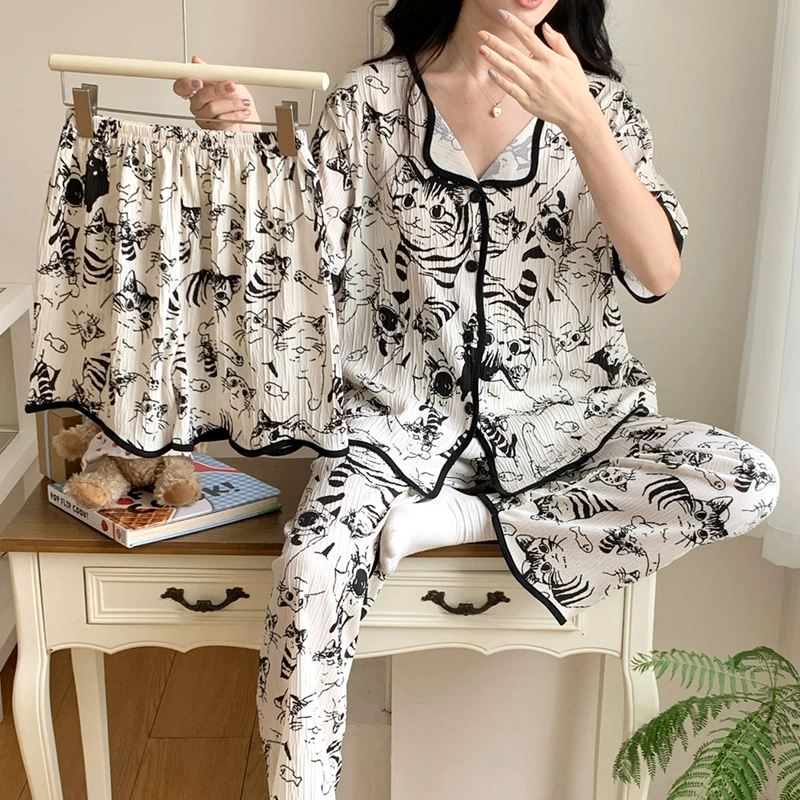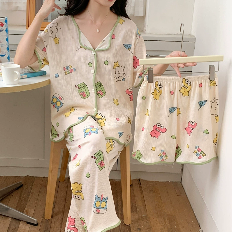 | nameOriginal | Summer crepe thin Crayon Shin-chan pajamas women's short-sleeved three-piece suit summer cute cartoon pure cotton home clothes |