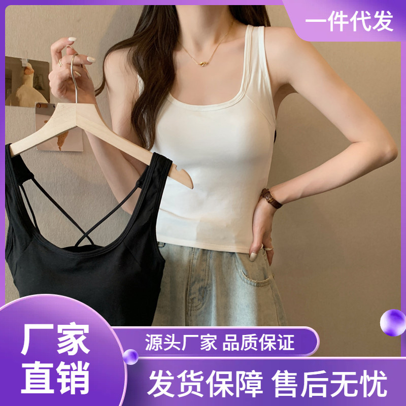 | nameOriginal | Summer Cross Sling Cotton Beautiful Back Vest with Chest Pad Wrap Chest Slim-fit Outer Wear Base Slimming Short Top for Women |