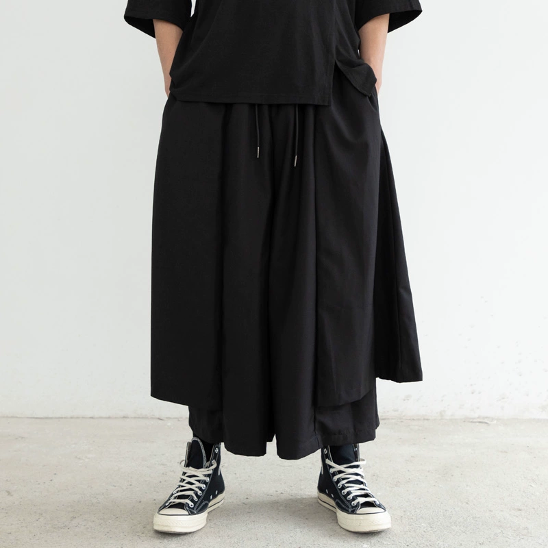 Summer culottes for men and women, Yamamoto Yohji style wide-leg pants, original dark design, large size elastic waist nine-point pants