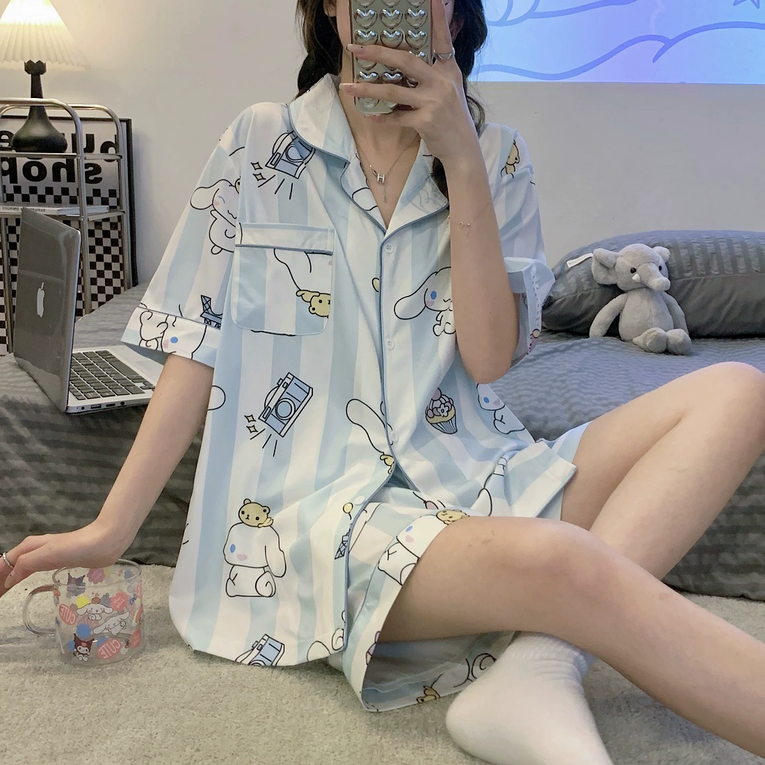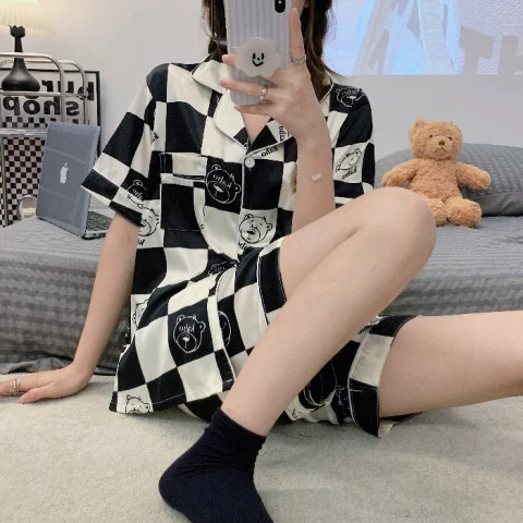 | nameOriginal | Summer cute ice silk short-sleeved ins style student girls pajamas |