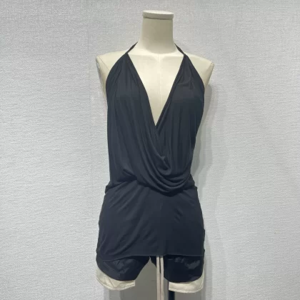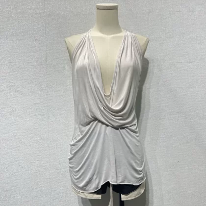 Summer dark street RO style pleated silky women’s sexy deep V casual backless bottoming thin camisole