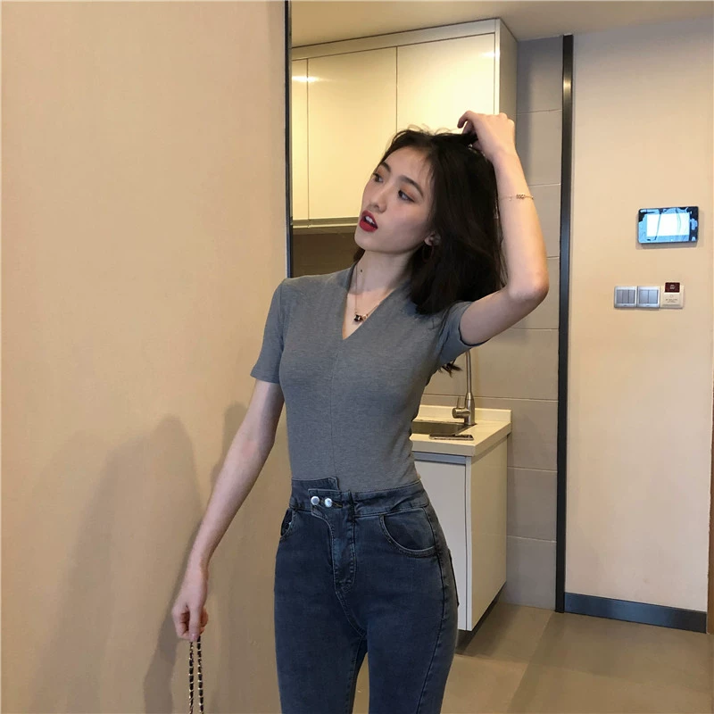 | nameOriginal | Summer deep V short-sleeved slim fit versatile slimming top T-shirt |