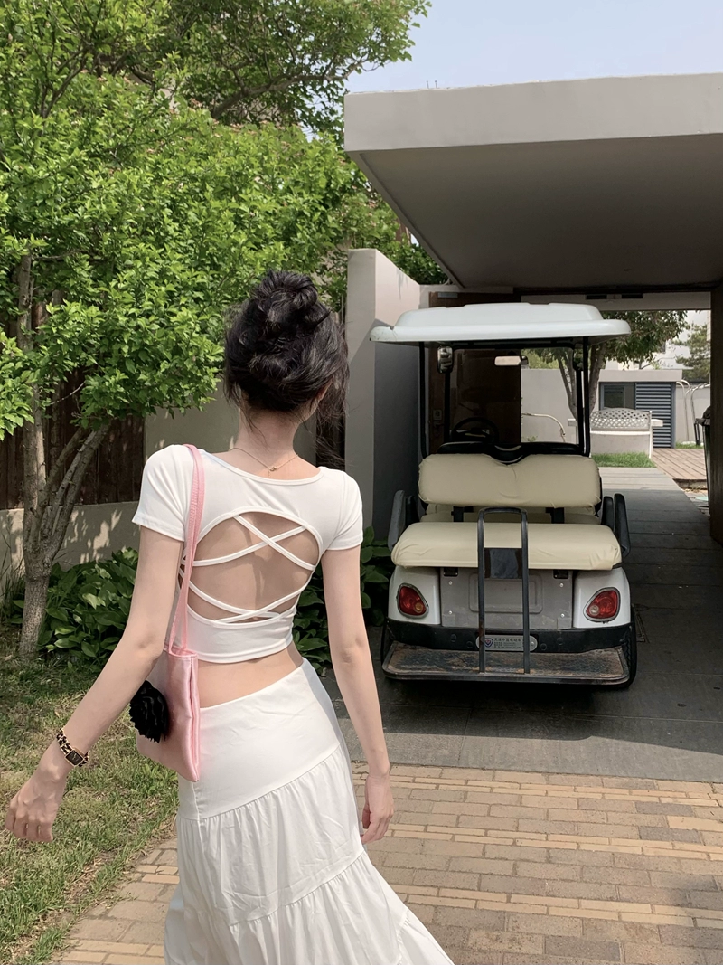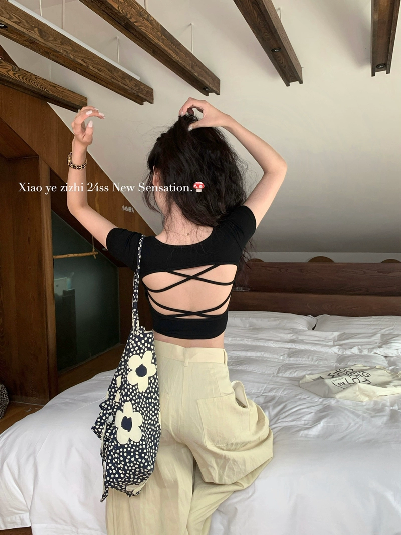 | nameOriginal | Summer design backless slim top short-sleeved T-shirt |