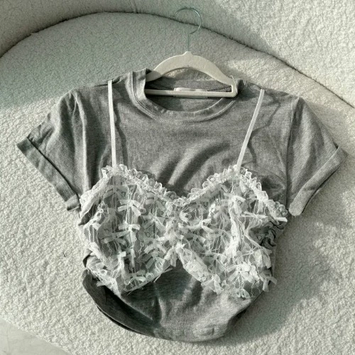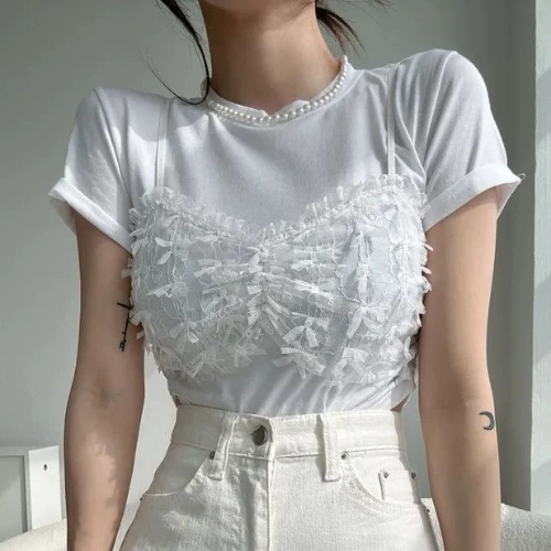 | nameOriginal | Summer design sense ins stitching slim fit T-shirt lace |