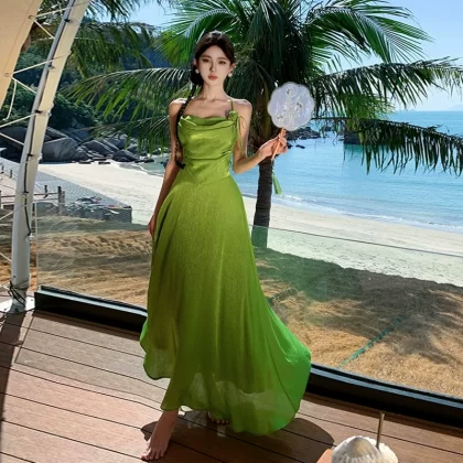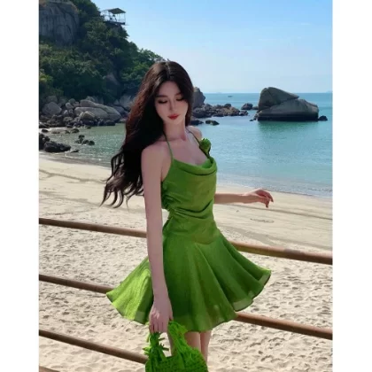 | nameOriginal | Summer dopamine vacation style slim dress halter neck |