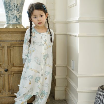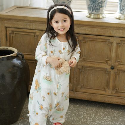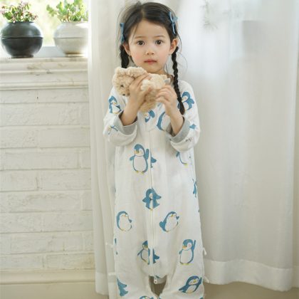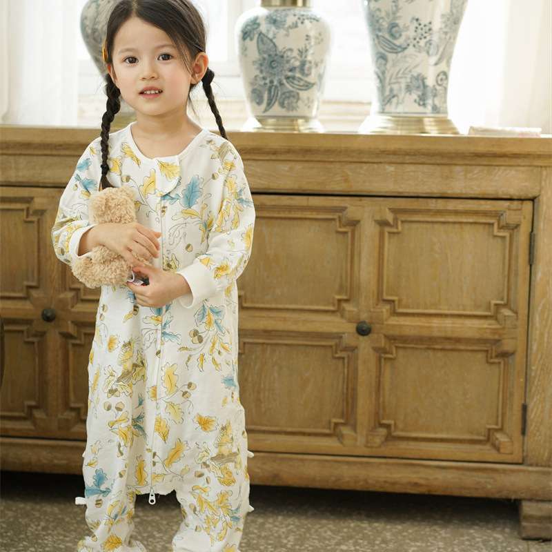 Summer Double Layer Long Sleeve Split Leg Sleeping Bag Baby Sleeping Bag Jumpsuit Children Sleeping Bag Bamboo Cotton Digital Printing
