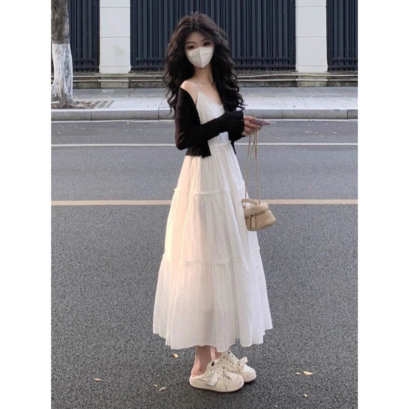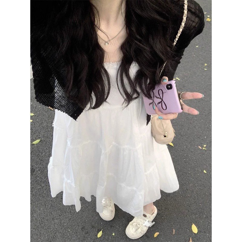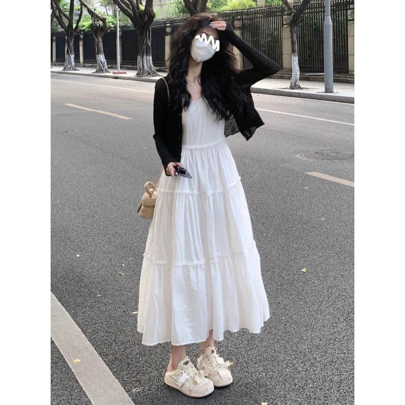 | nameOriginal | Summer dress with a set of 2024 fashion new slim slim black cardigan super fairy princess style dress women |