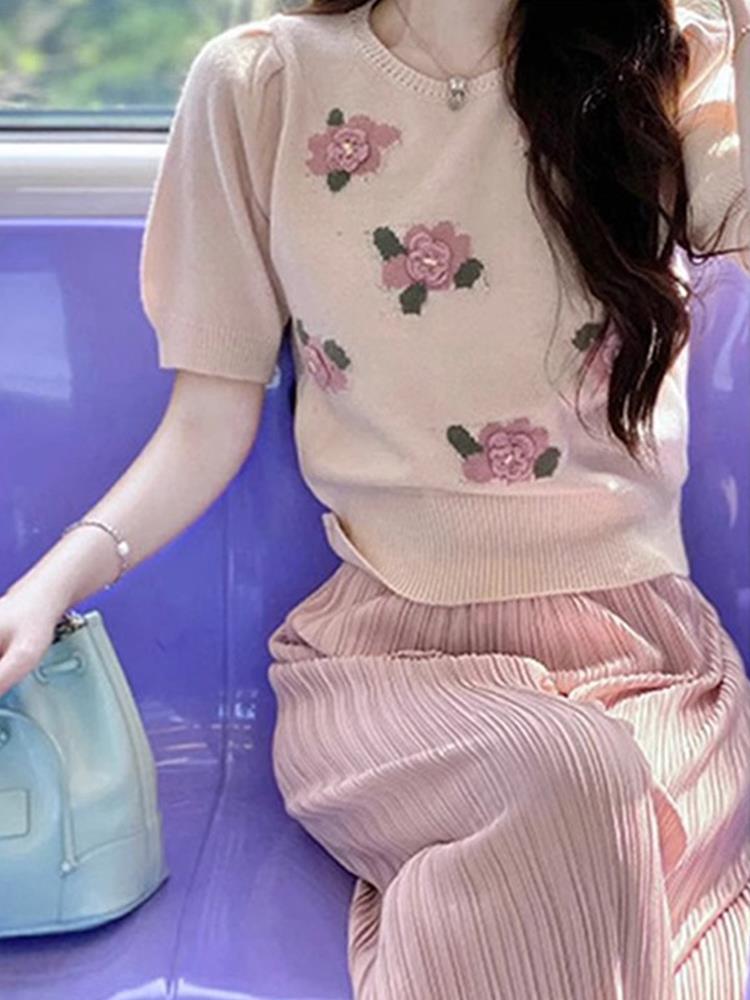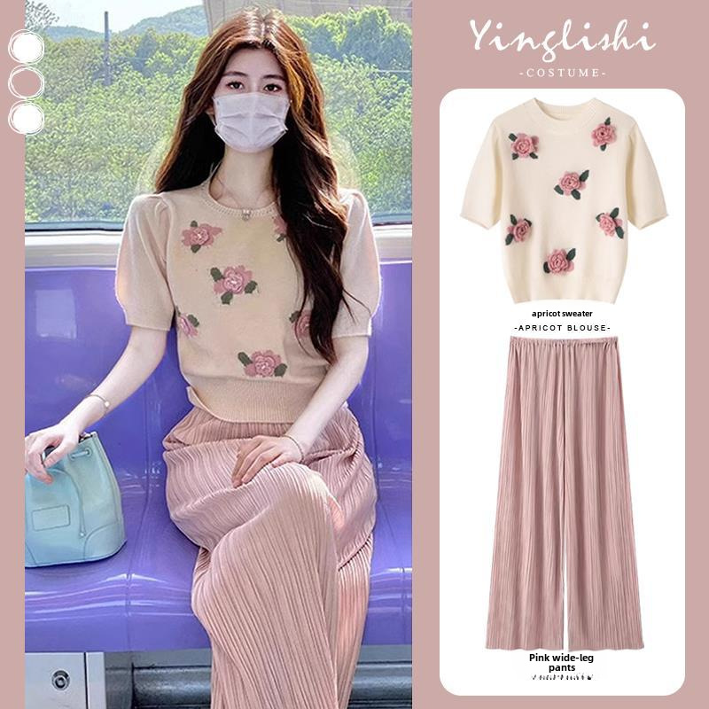 | nameOriginal | Summer dress with a set of 2024 new tea style wear Korean drama xiaoxiang style age-reducing light mature two-piece skirt pants |