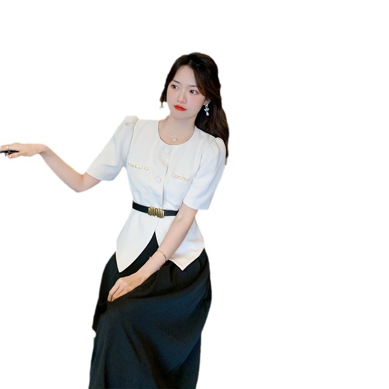 | nameOriginal | Summer dress with a set of small dress socialite style temperament high sense professional light mature skirt two-piece set |