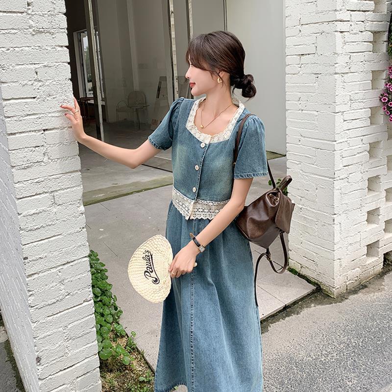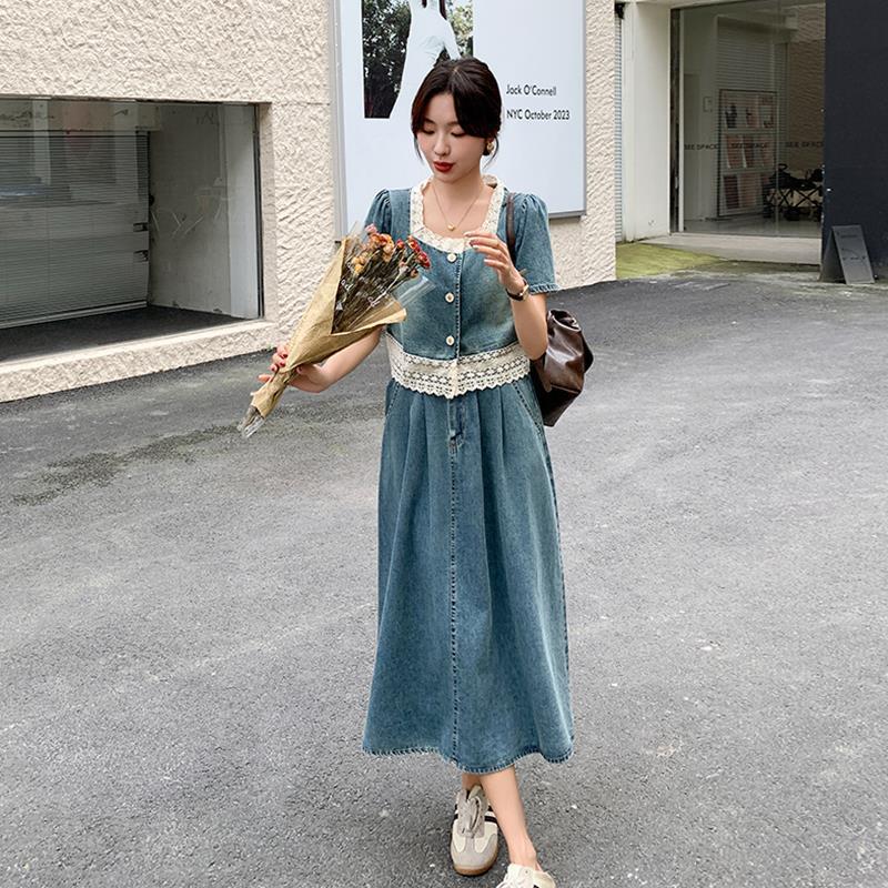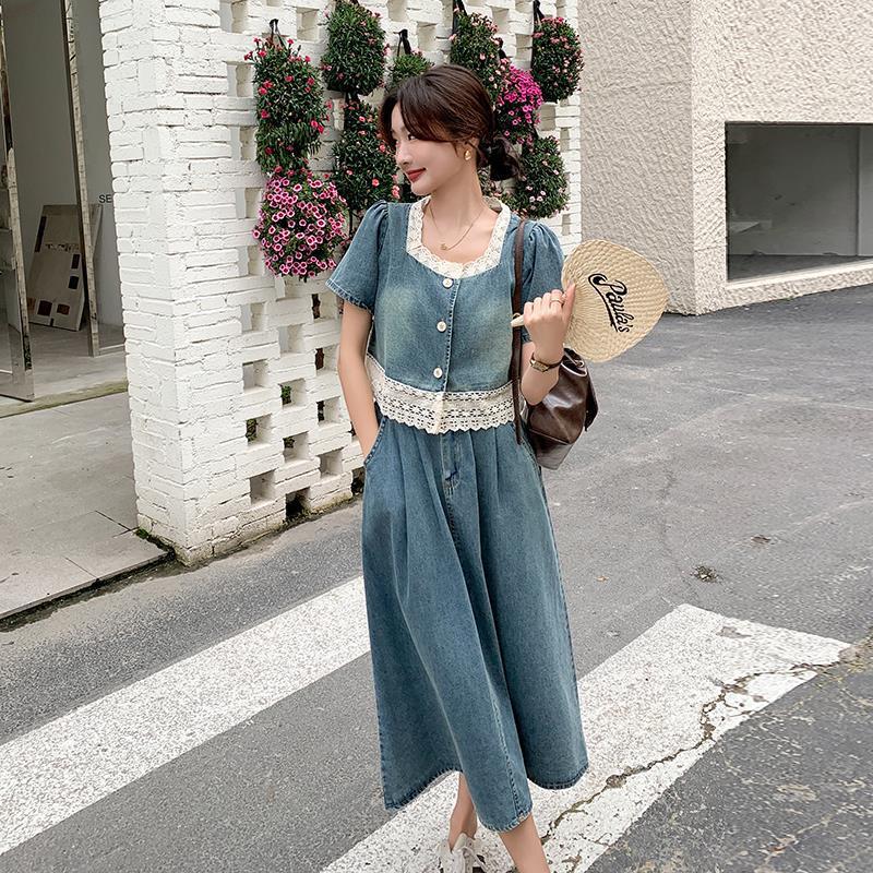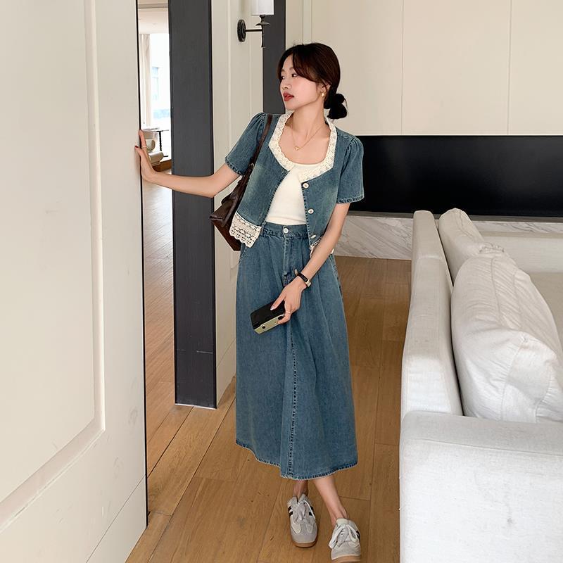 | nameOriginal | Summer dress with a set of women's 2024 summer this year's fashion Denim lace top skirt two-piece set |