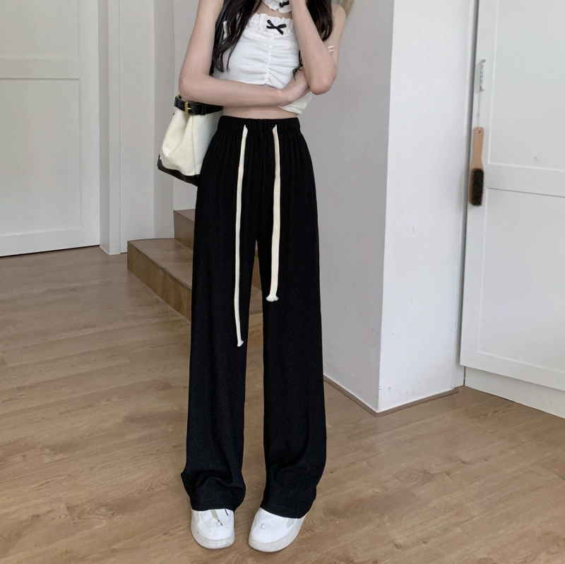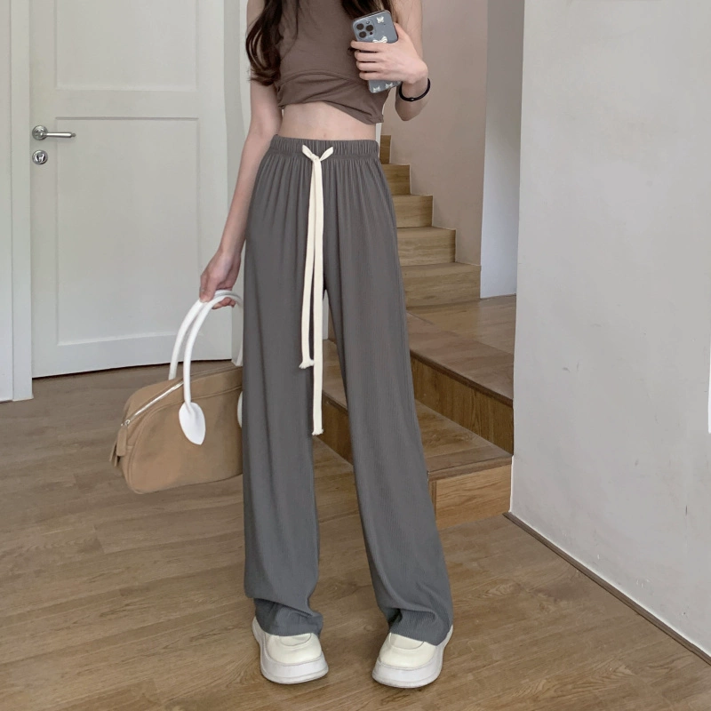 Summer elastic waist drawstring pants for pear-shaped body and slightly fat body