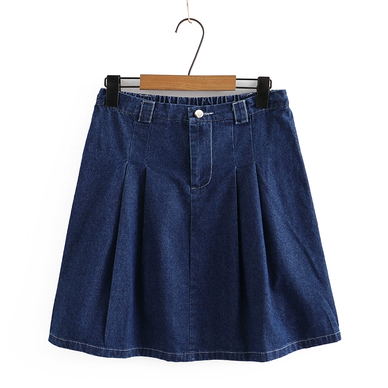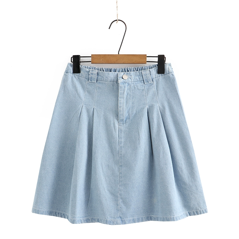 | nameOriginal | Summer elastic waist light blue large size denim skirt |