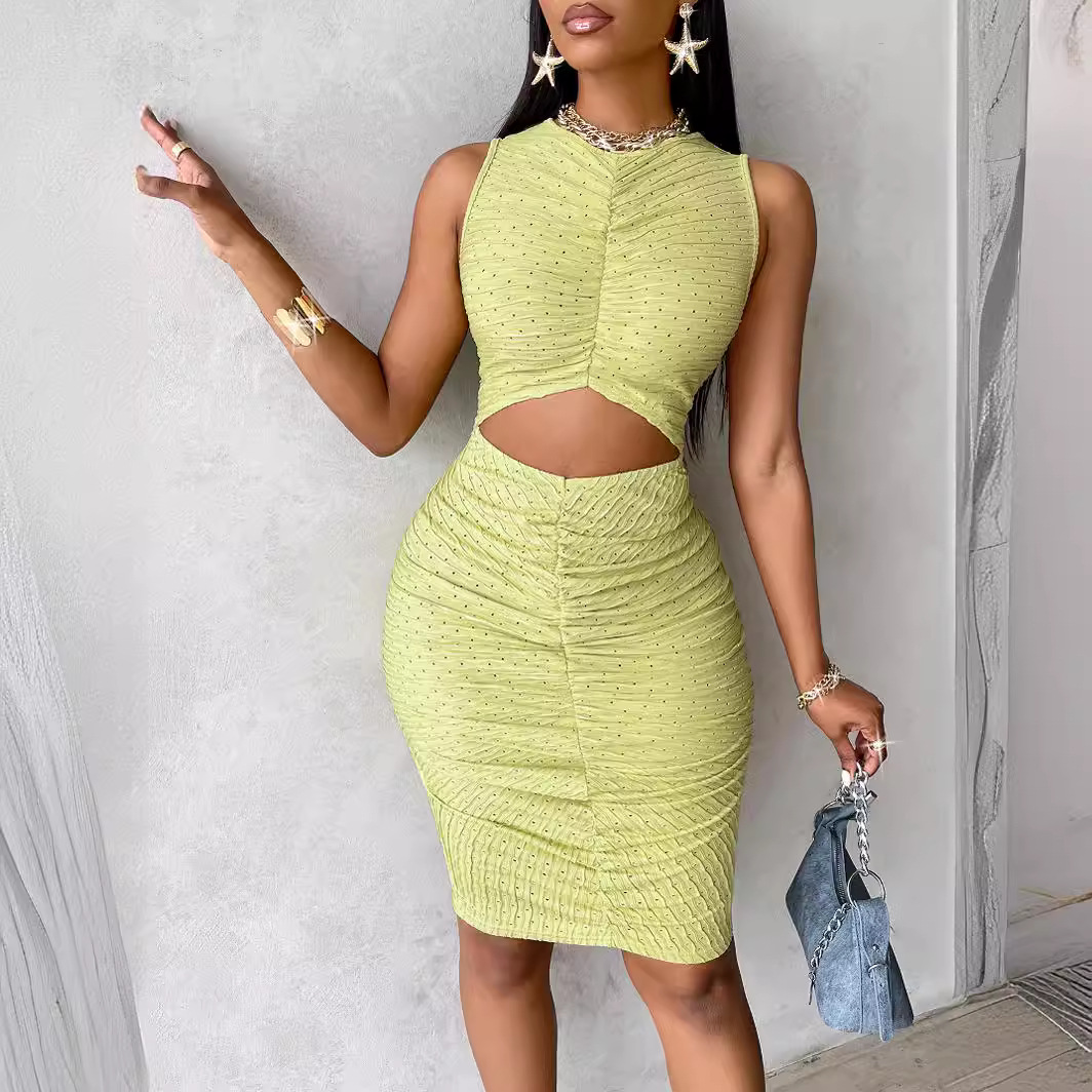 | nameOriginal | Summer Europe and the United States best selling new women's independent station 24 years cross-border round neck solid color hollow vest pleated dress |