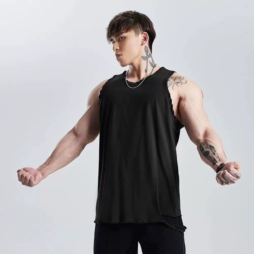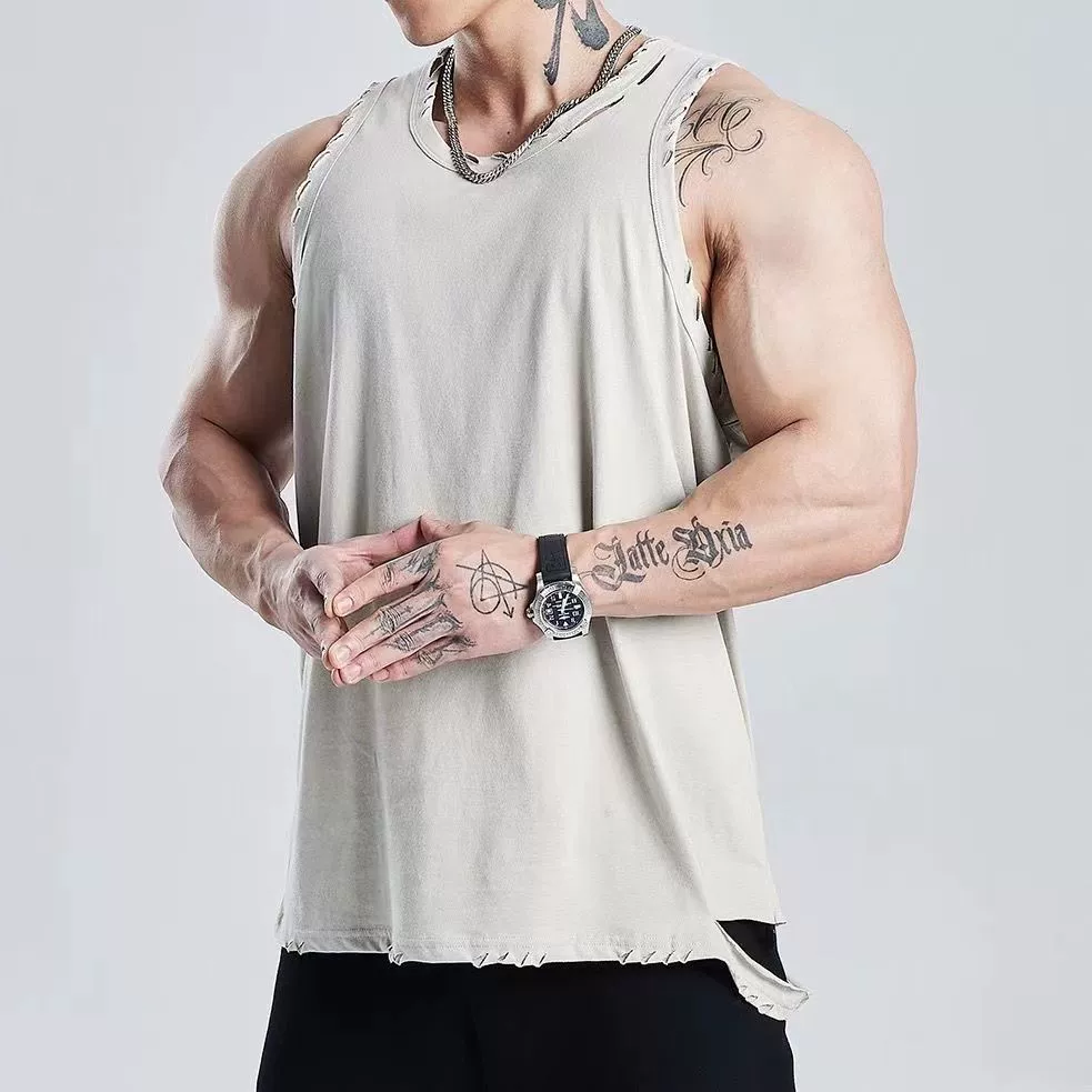 | nameOriginal | Summer extra large size 300 pounds American retro high street ripped sports vest men's fitness training loose sleeveless T-shirt |
