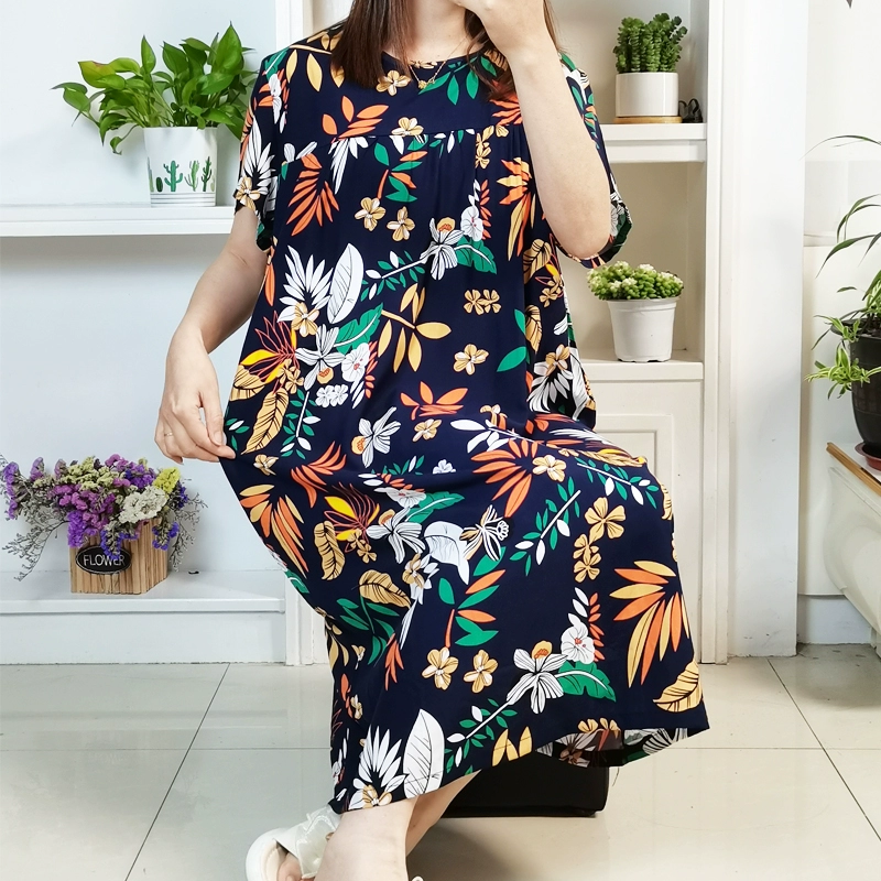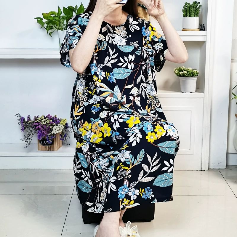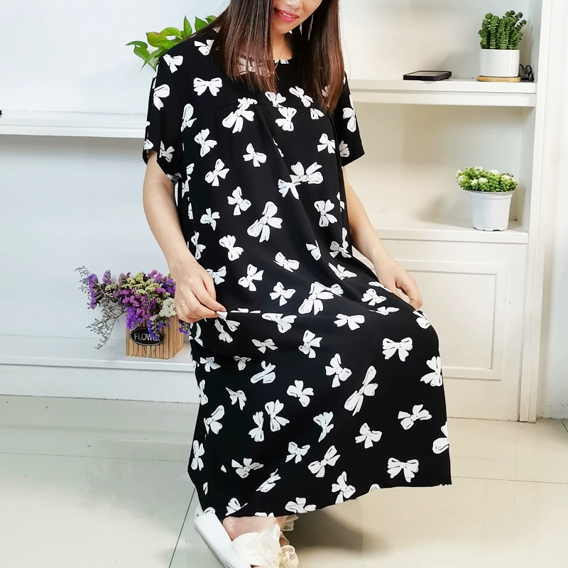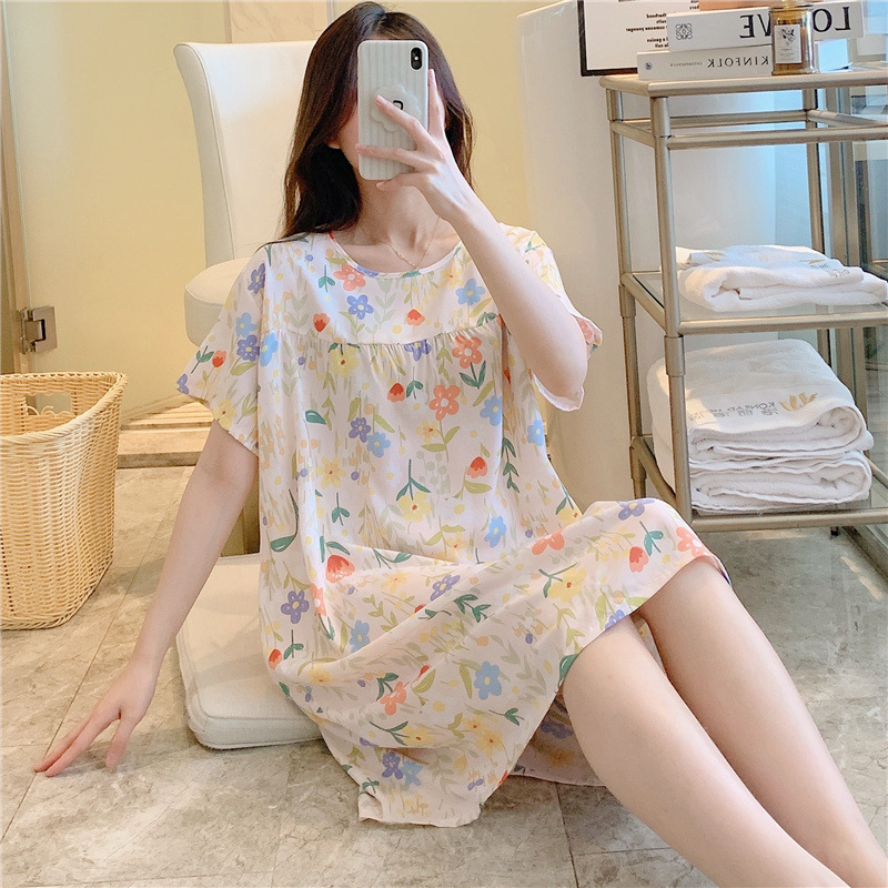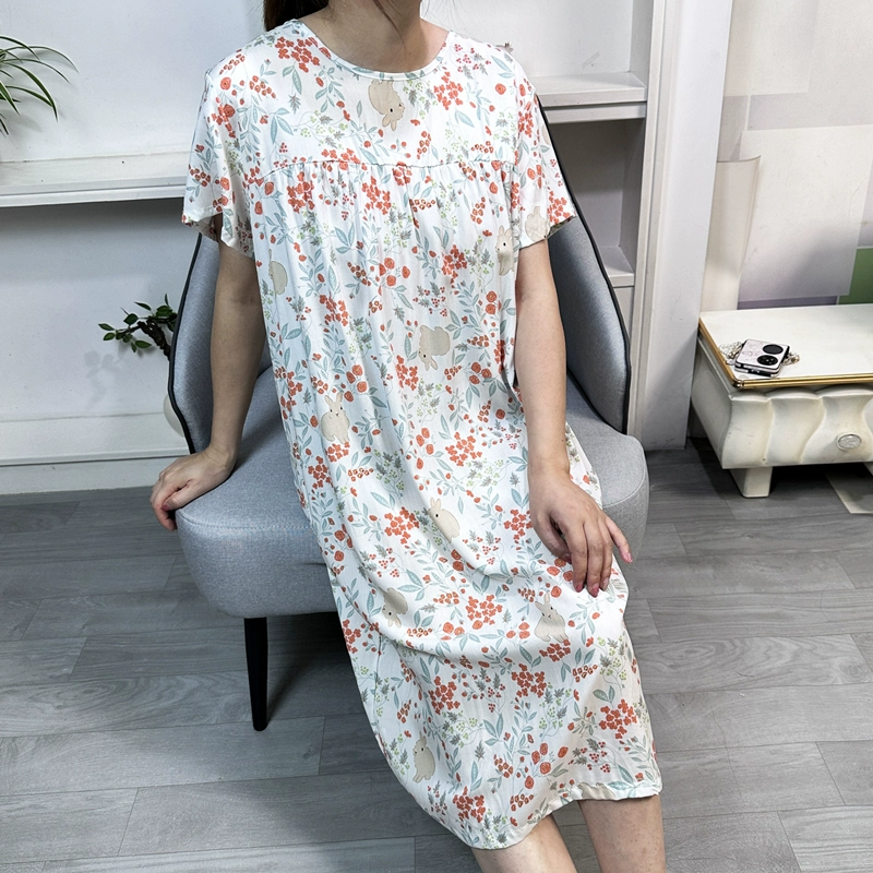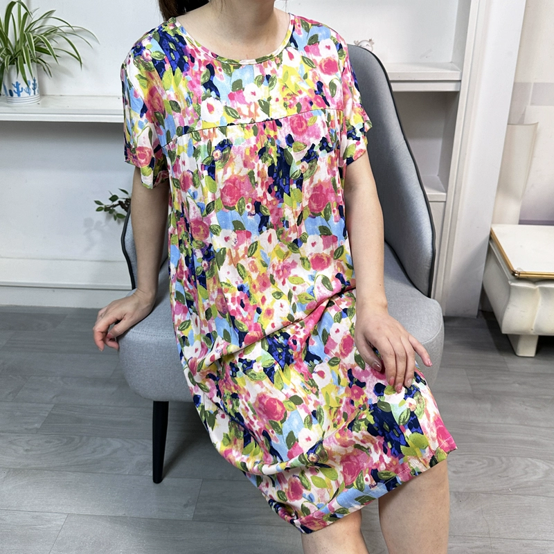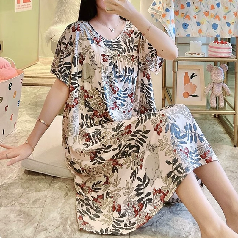 | nameOriginal | Summer extra length plus fat mm nightgown, pajamas, home clothes, short-sleeved loose cotton silk rayon thin outer wear dress |