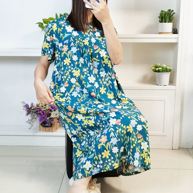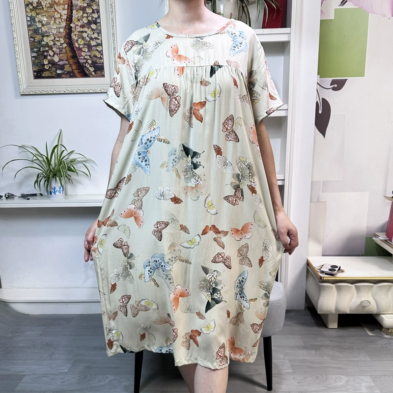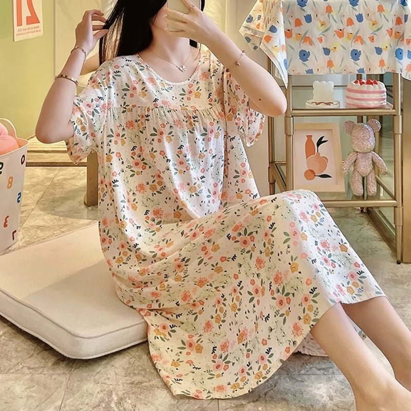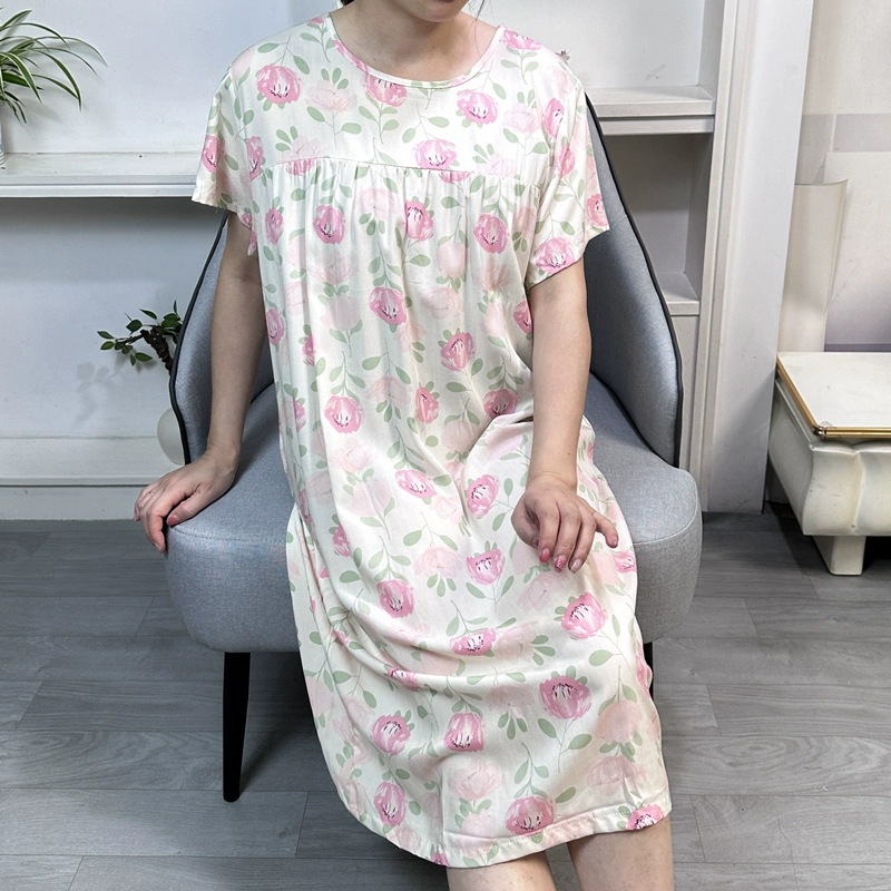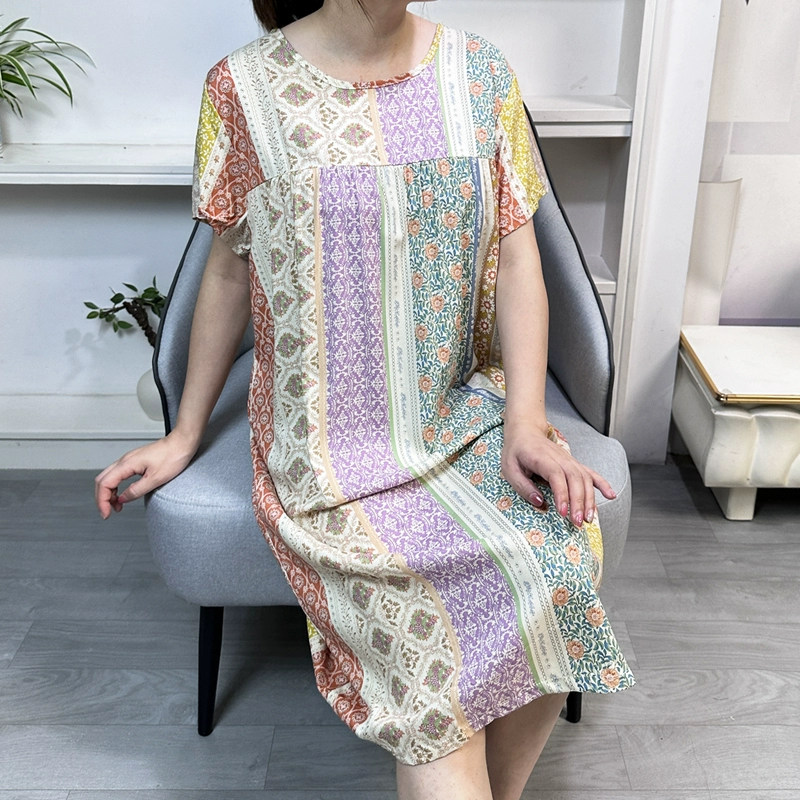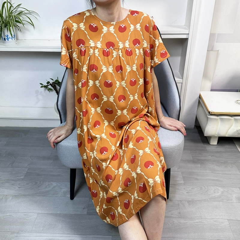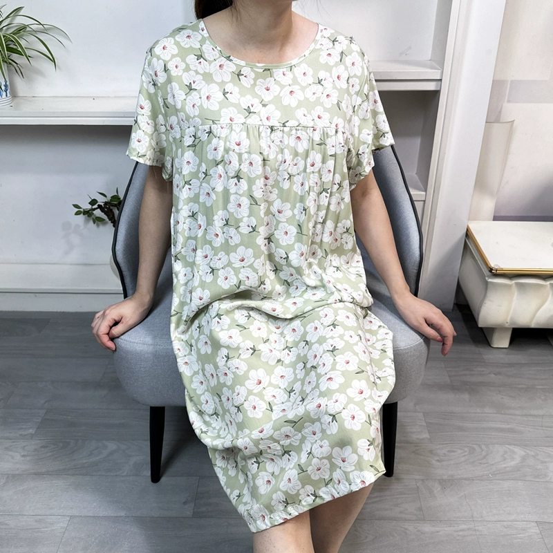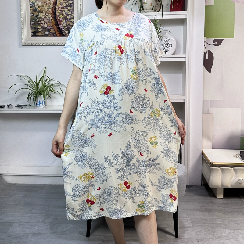 | nameOriginal | Summer extra length plus fat mm nightgown, pajamas, home clothes, short-sleeved loose cotton silk rayon thin outer wear dress |