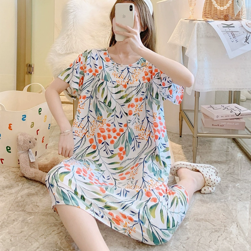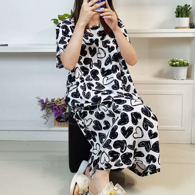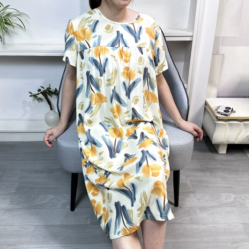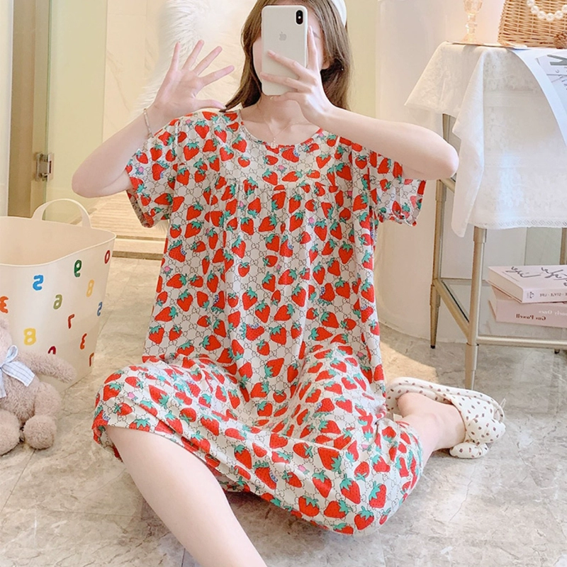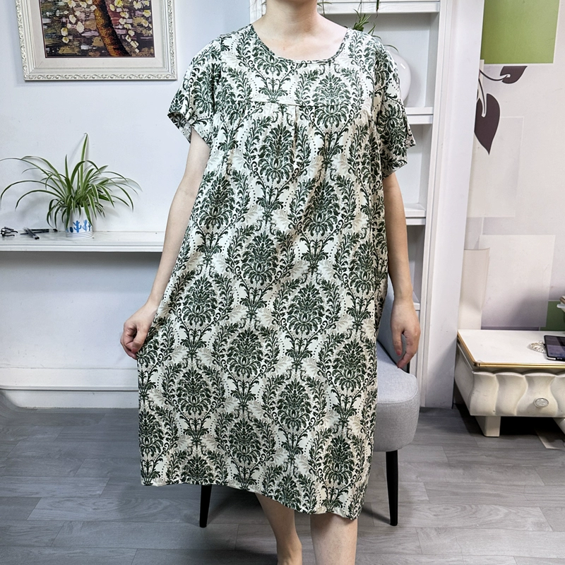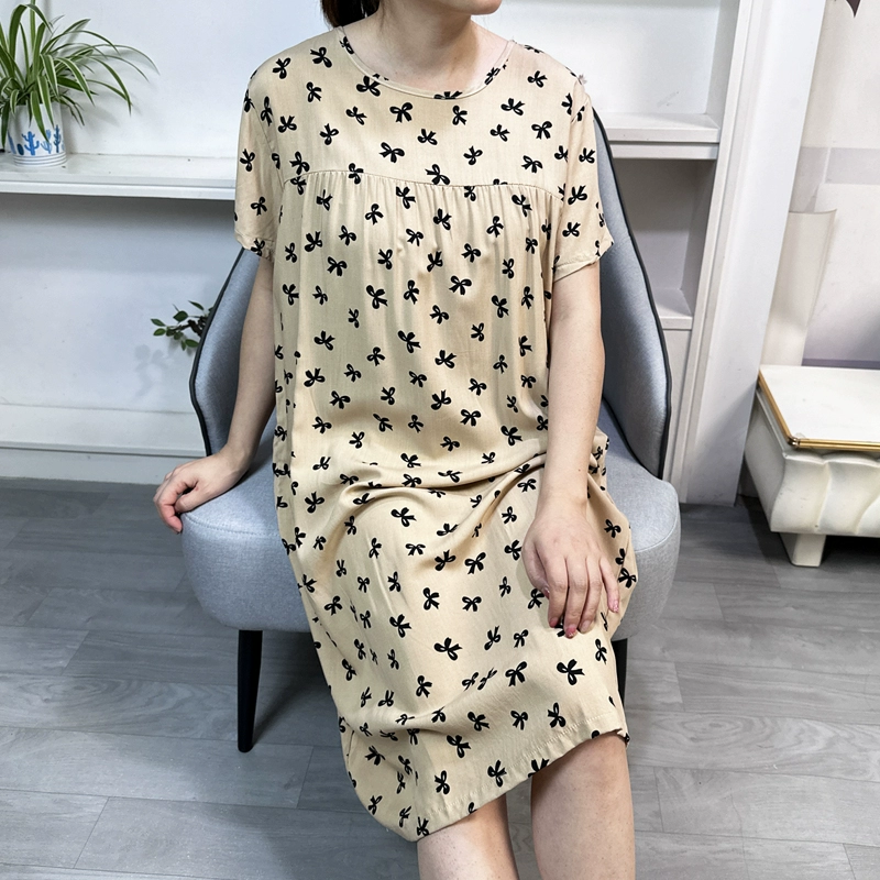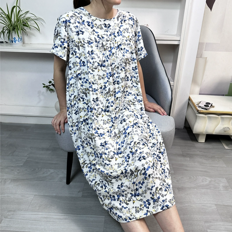 | nameOriginal | Summer extra length plus fat mm nightgown, pajamas, home clothes, short-sleeved loose cotton silk rayon thin outer wear dress |
