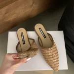 Summer Fairy Pointed Toe Woven Hollow Flat Half Slippers