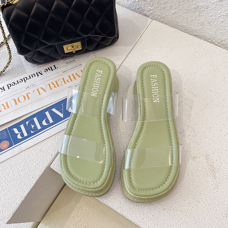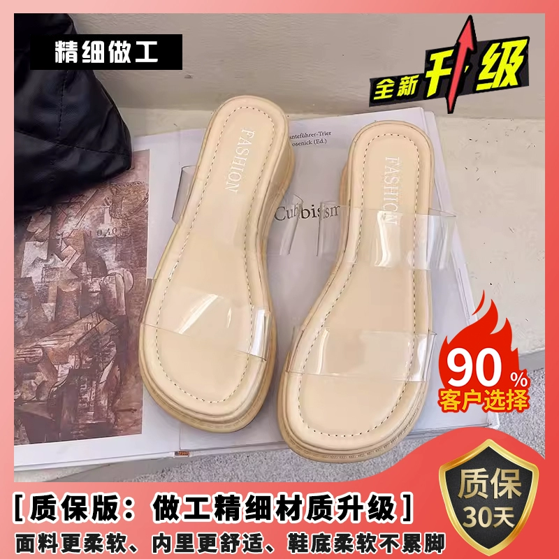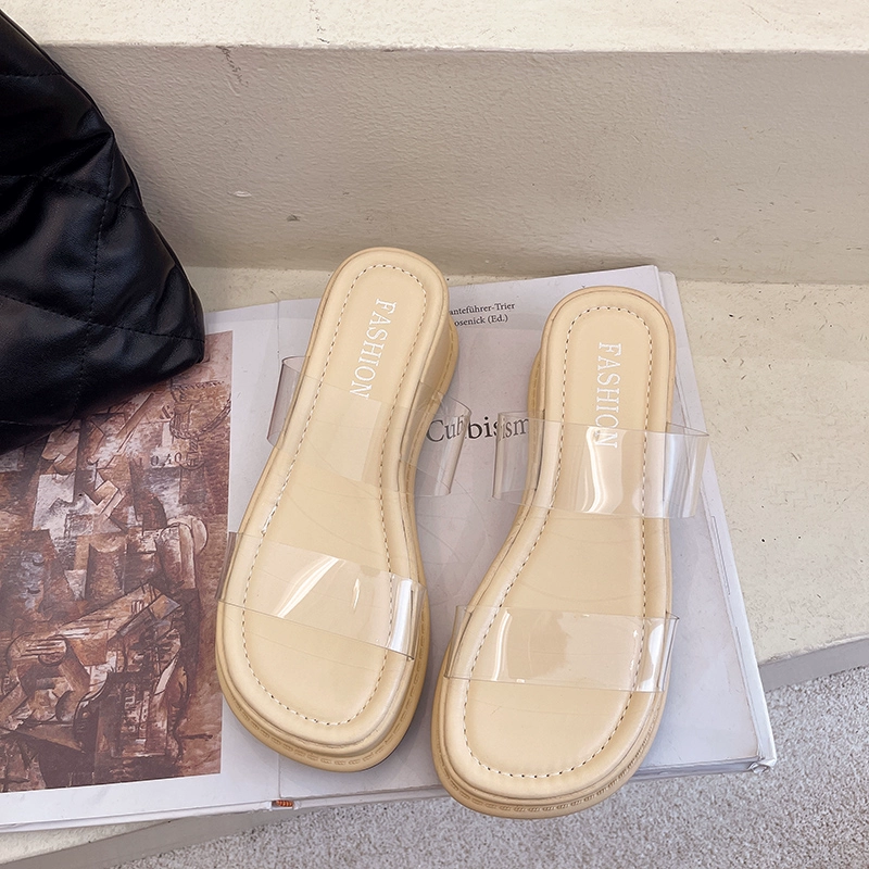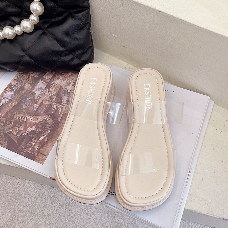 Summer fairy style transparent thick-soled versatile outer sandals