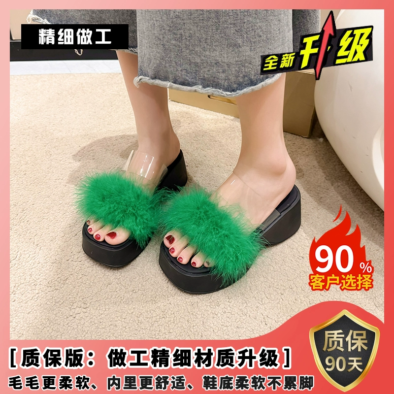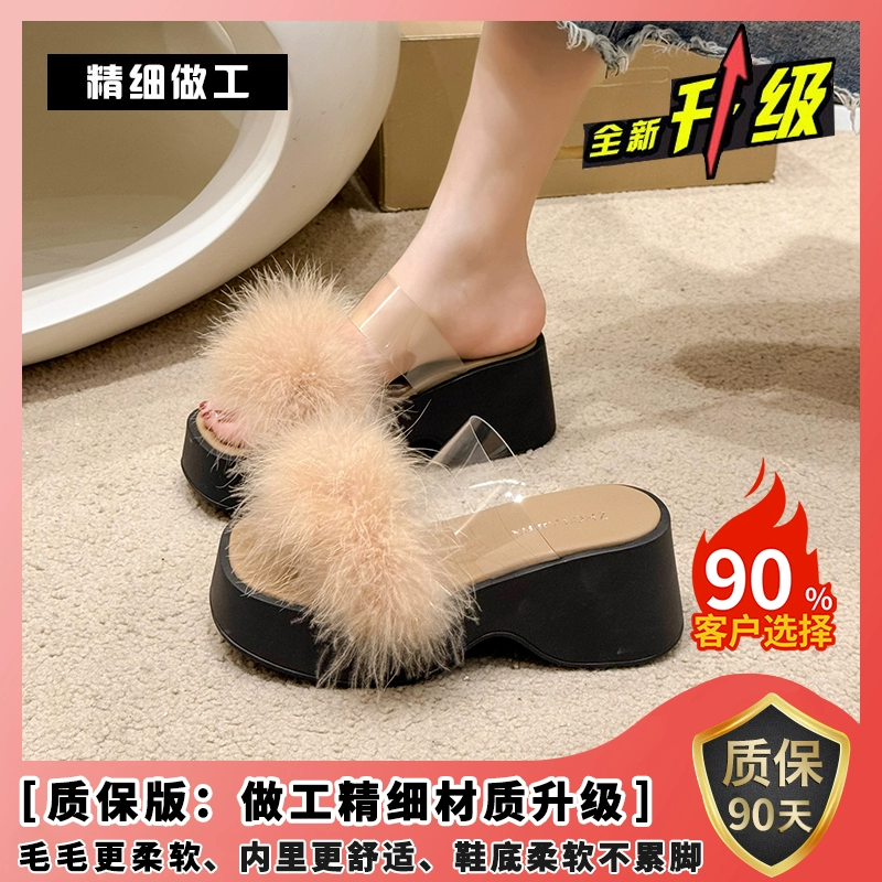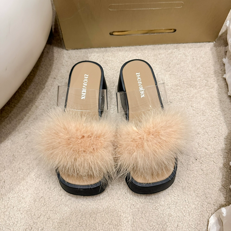 | nameOriginal | Summer fairy style waterproof platform thick sole transparent furry slippers |