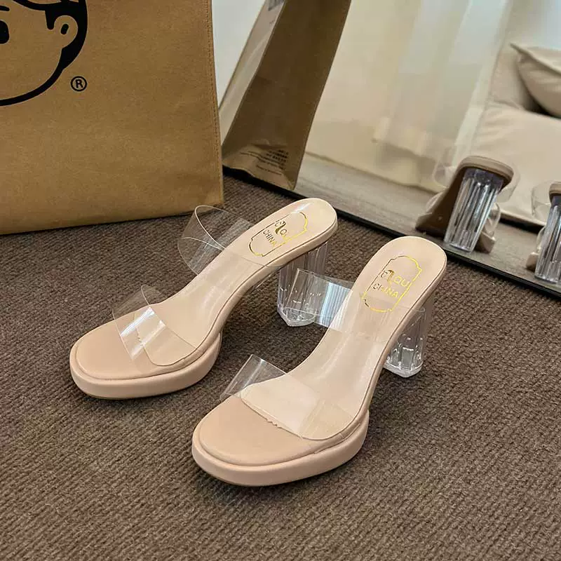 Summer Fairy thick heel niche high-end crystal slippers