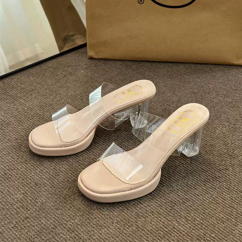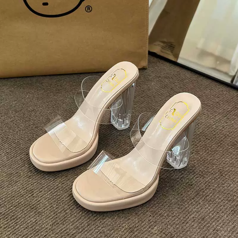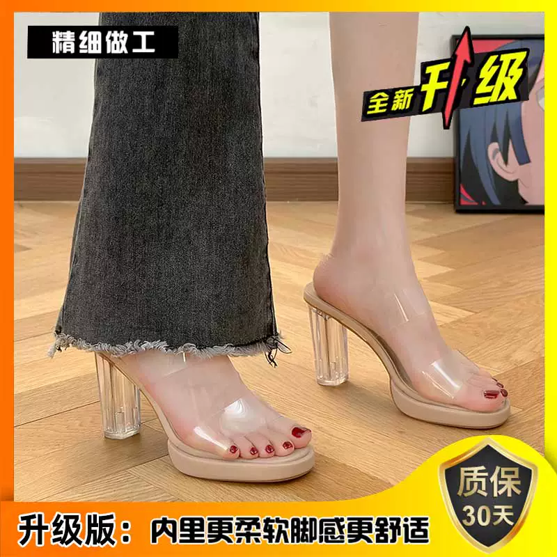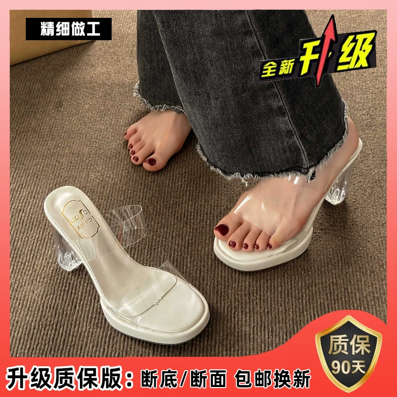 Crystal slippers for women in summer wear fashionable fairy French transparent high heels thick heels sandals niche high-end sandals