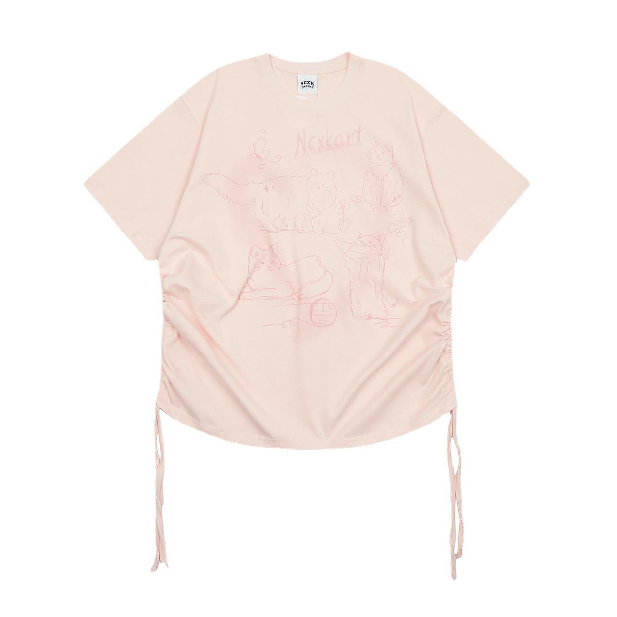 | nameOriginal | Summer Fashion All-match Casual Lovable Style Lazy Kitten Sketch Printed Short-sleeved T-shirt Side Drawstring |