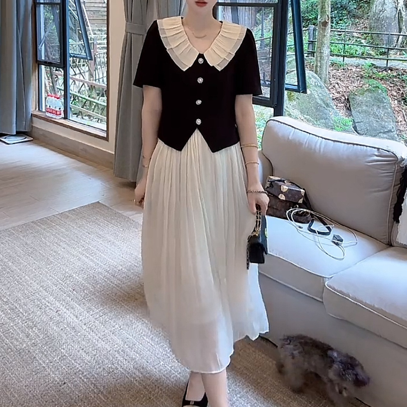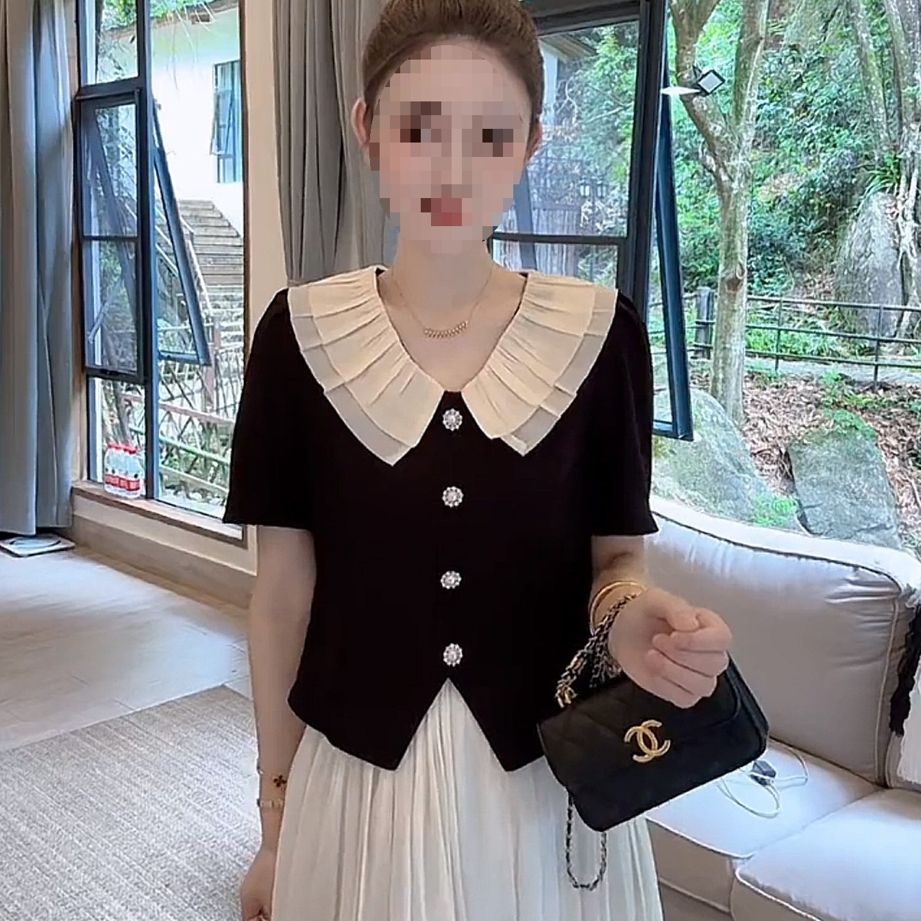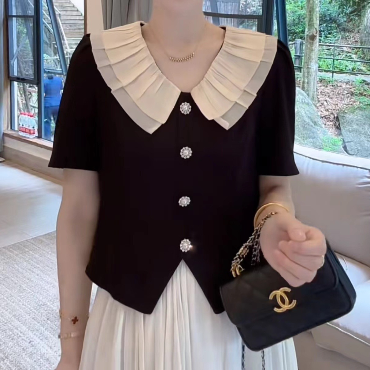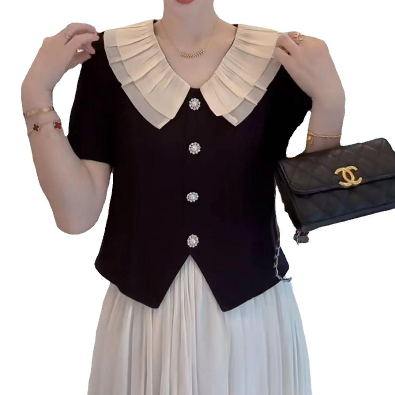 | nameOriginal | Summer Fashion All-match Princess Style Hepburn Style Double-layer Mesh Doll Collar Single-breasted Short Top Short Sleeve |