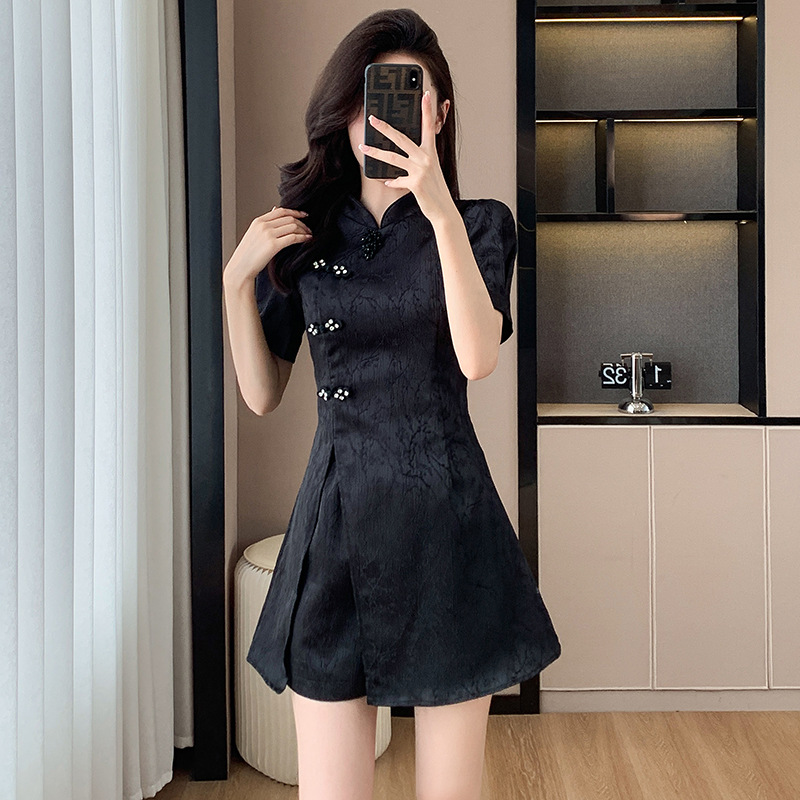 | nameOriginal | Summer Fashion Elegant National Style Set New Chinese Style Improved Cheongsam Jacquard Dress Shorts Two-piece Set |