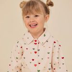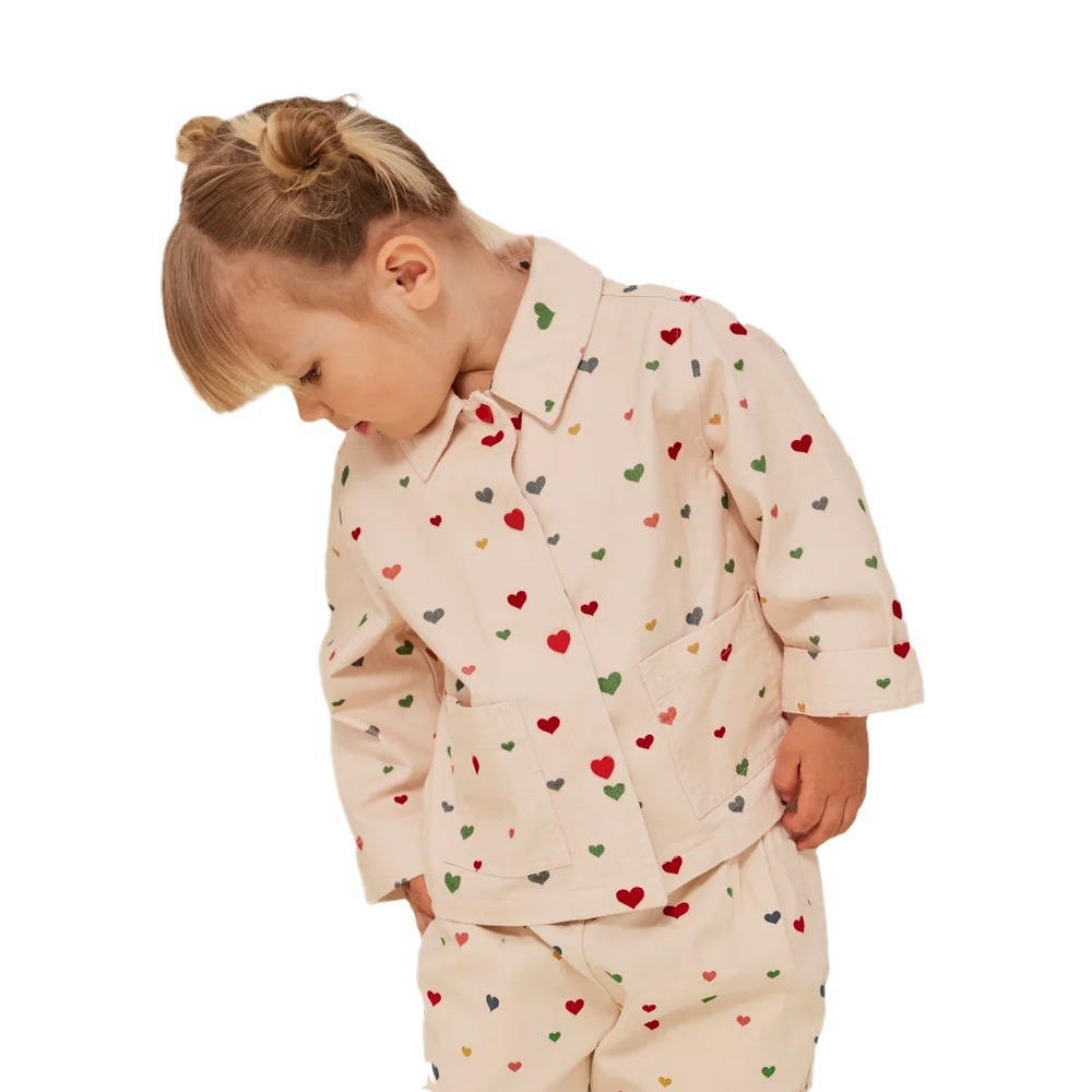 Summer Fashion Ks Shirt Girl’s Cotton Love Heart Pattern Print Long Sleeve Lapel Shirt Girls’ Top