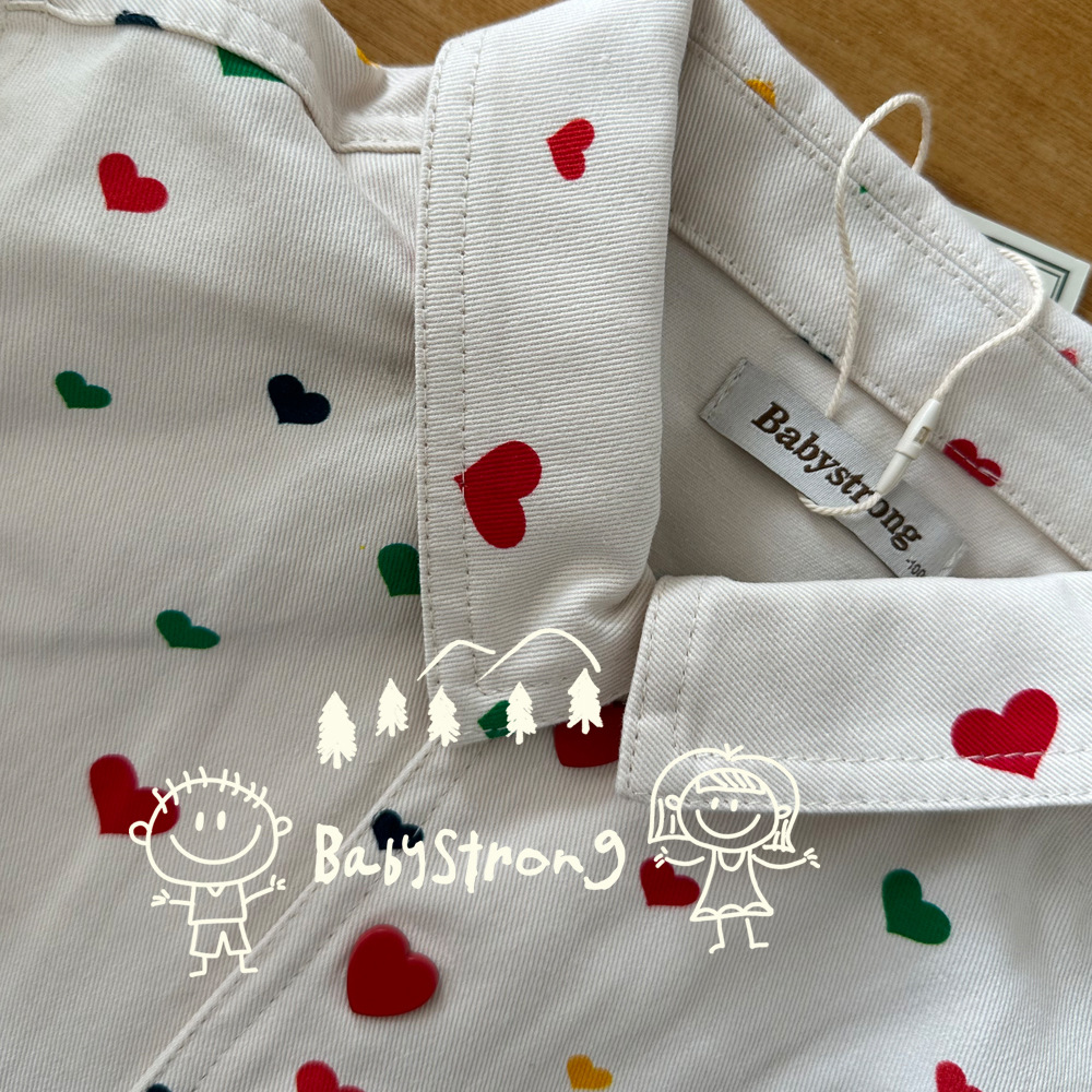 Summer Fashion Ks Shirt Girl's Cotton Love Heart Pattern Print Long Sleeve Lapel Shirt Girls' Top