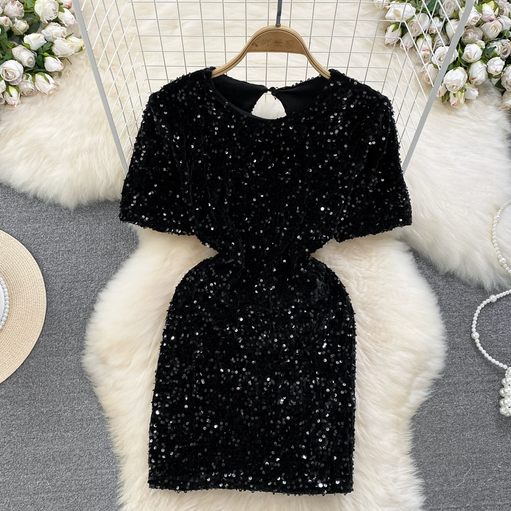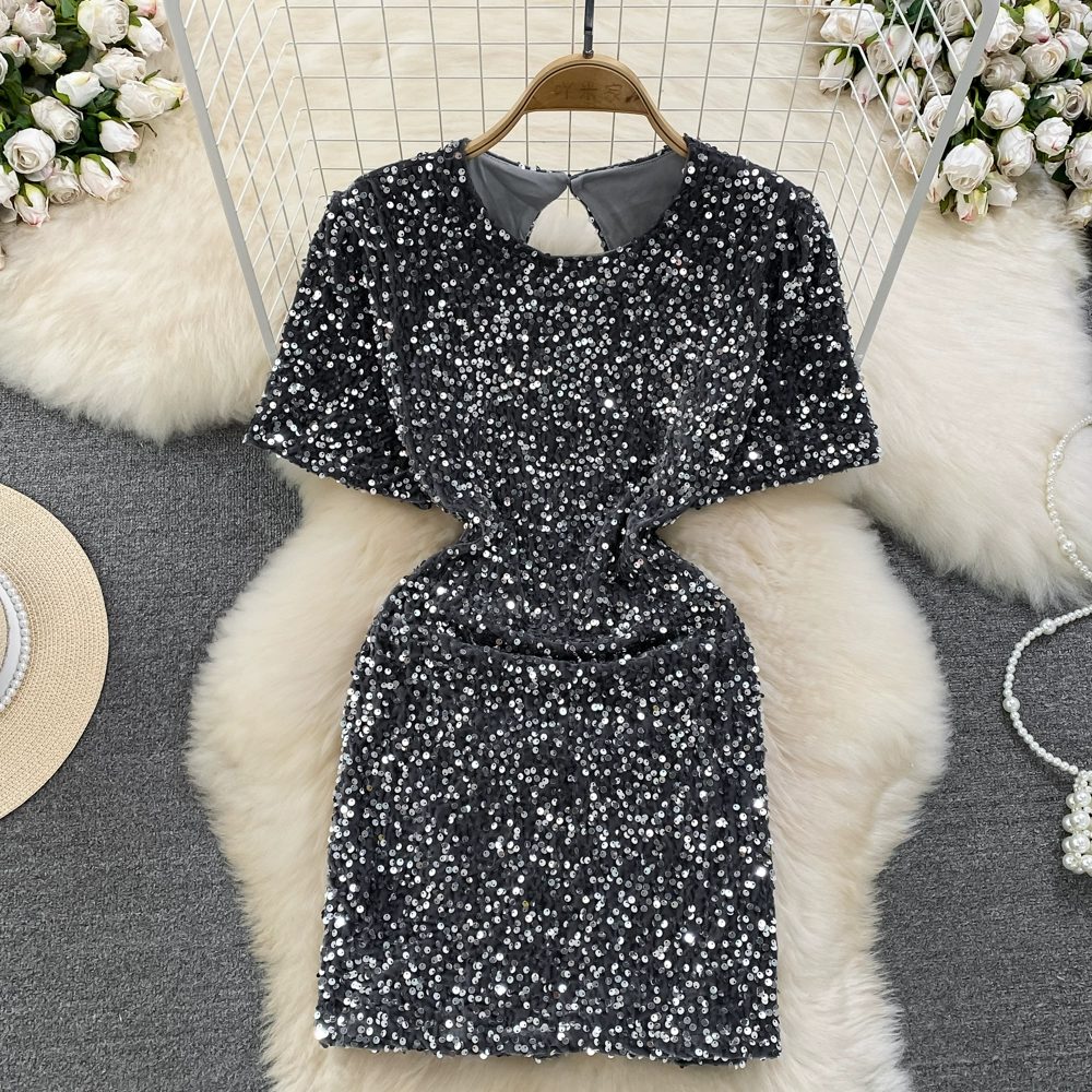 | nameOriginal | Summer Fashion Sparkling Sequin Backless Dress Short Sleeves |
