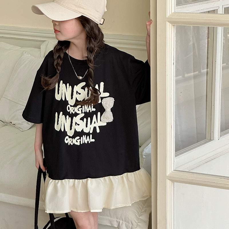 Two fashionable short-sleeved skirts for mid-sized children in summer