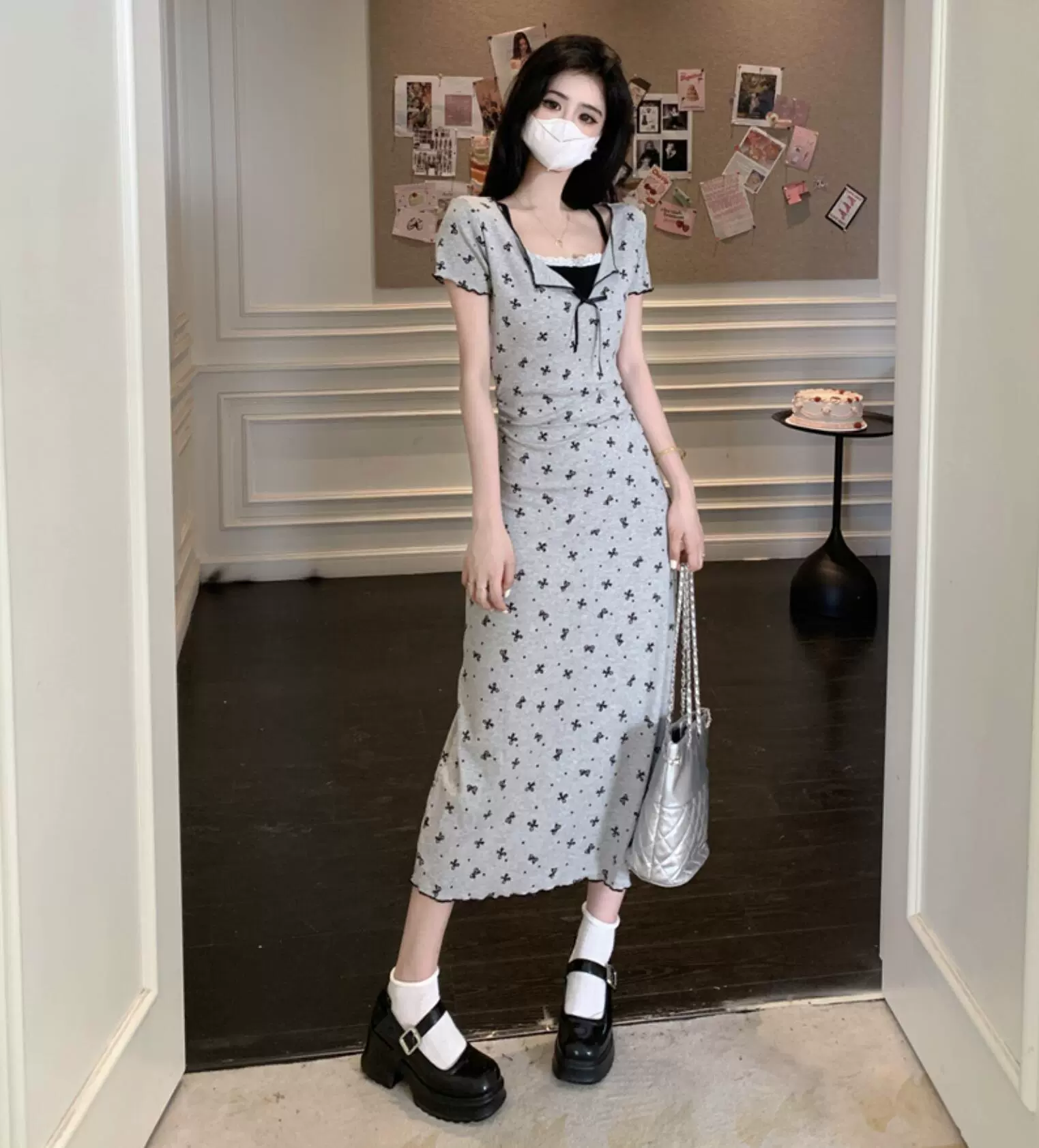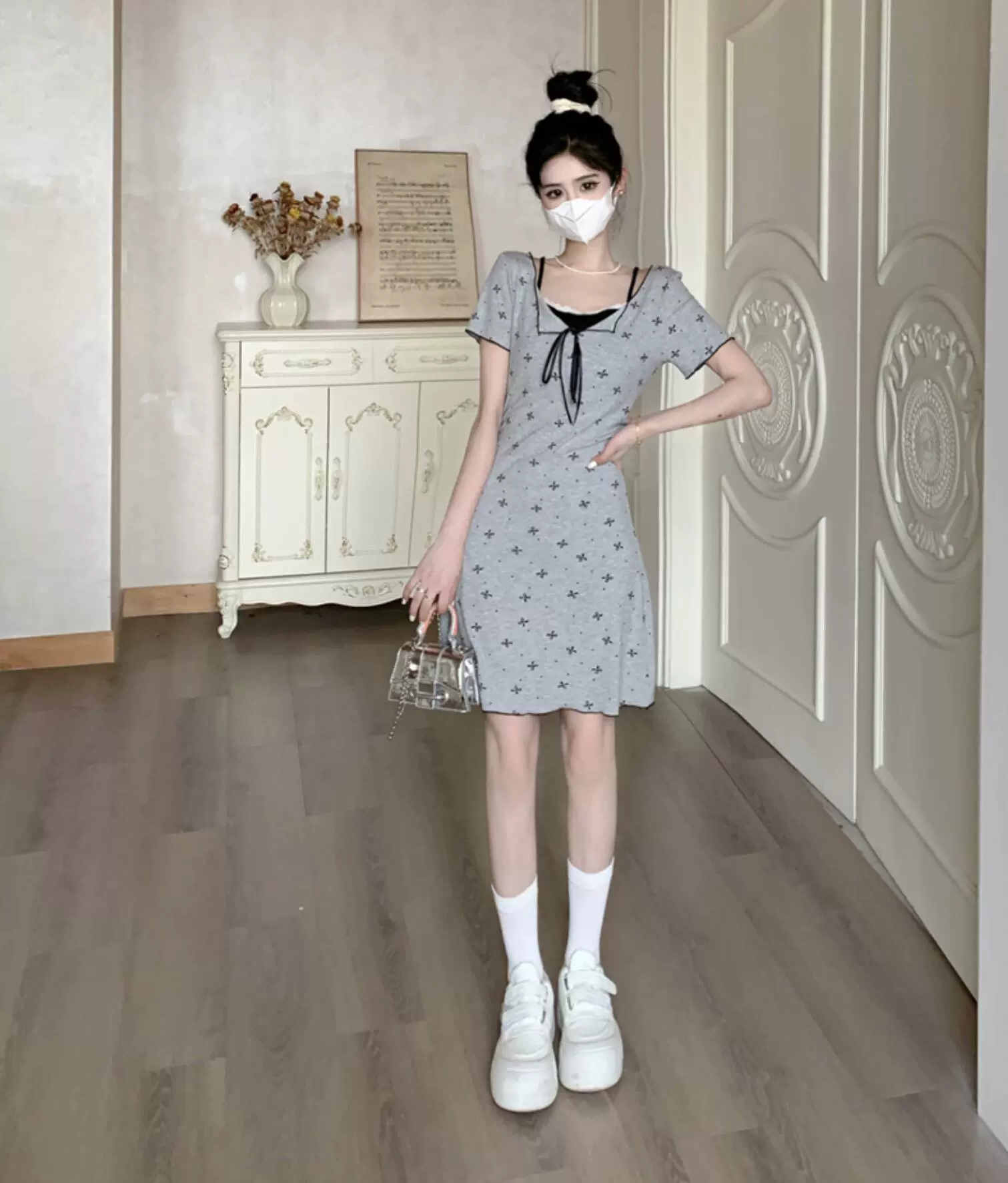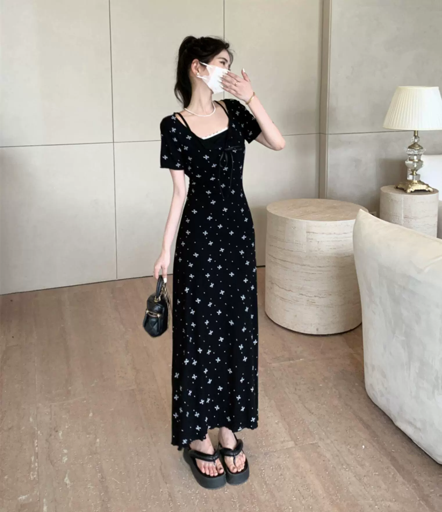 | nameOriginal | Summer fat girl Hepburn style little black dress fake two pieces |
