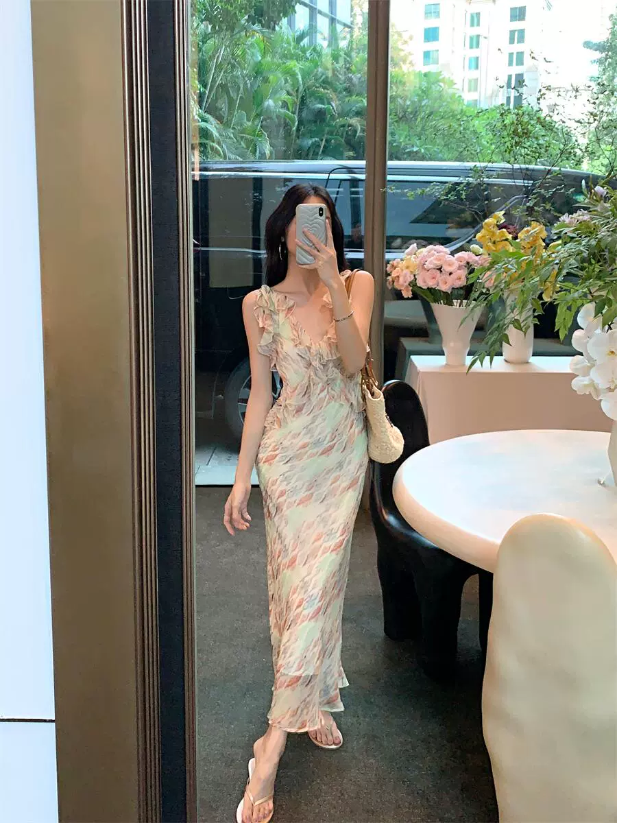 | nameOriginal | Summer figure-flattering long skirt revealing backpack buttocks and v-neck suspenders |