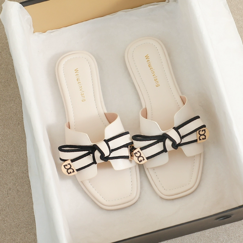| nameOriginal | Summer flat bow fairy style slippers with skirt  |