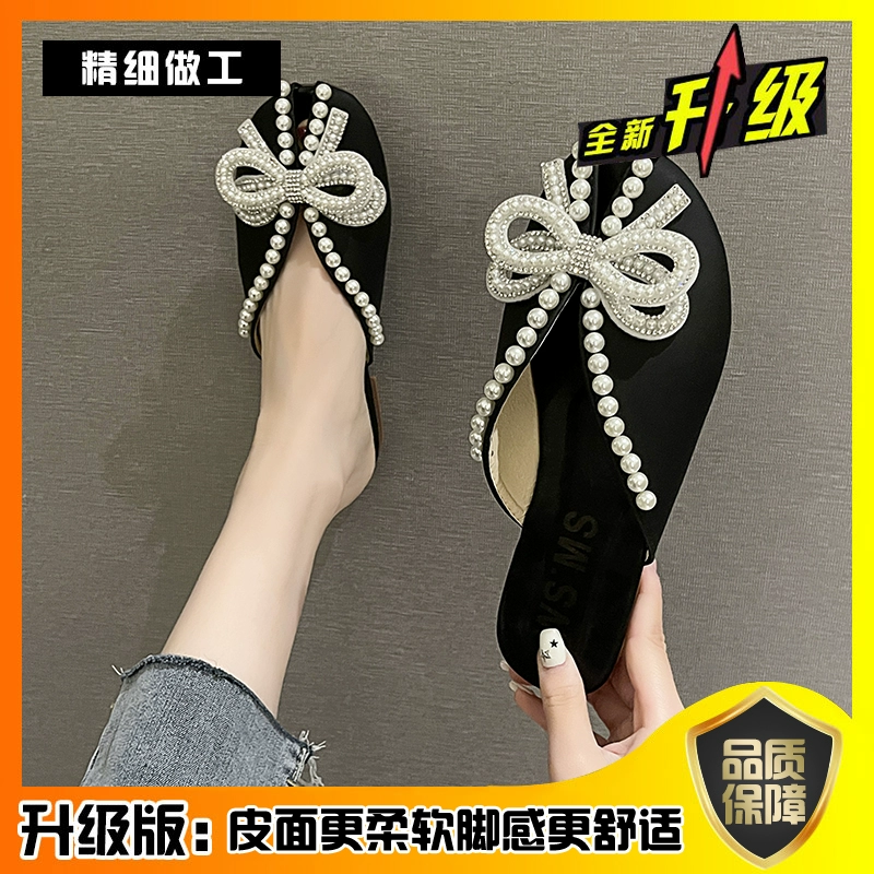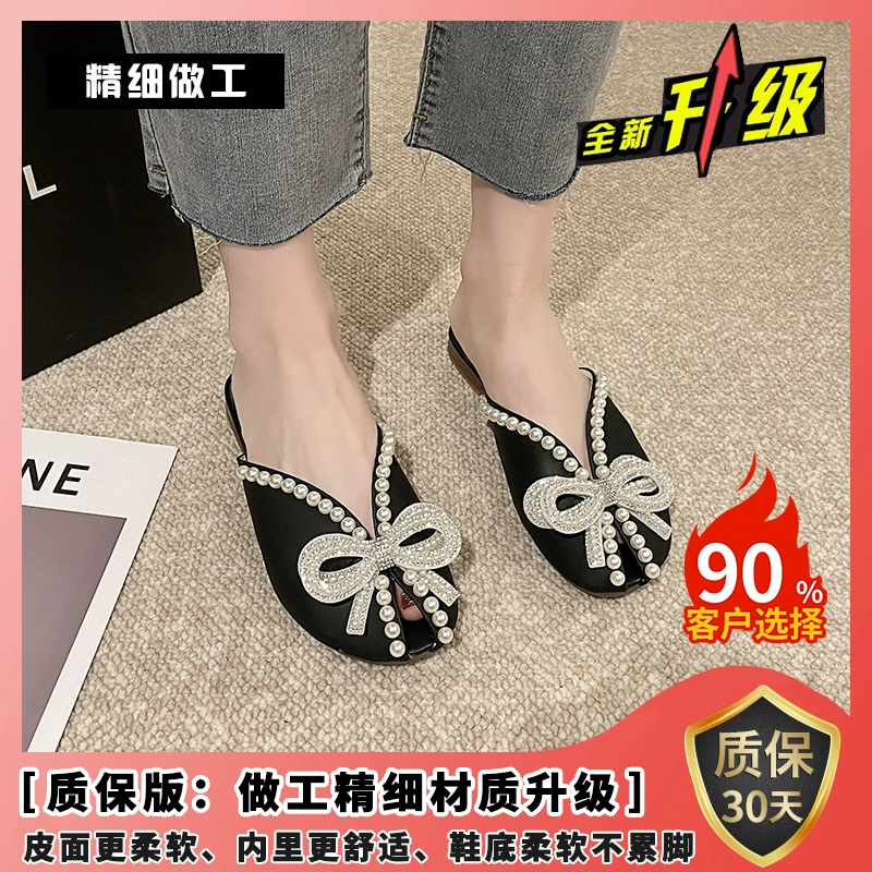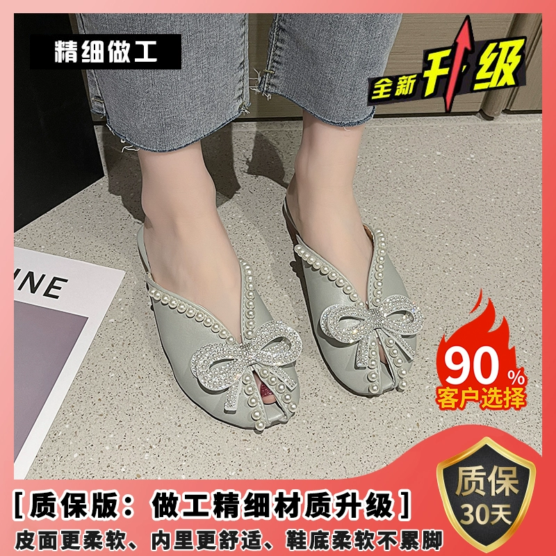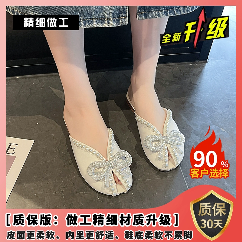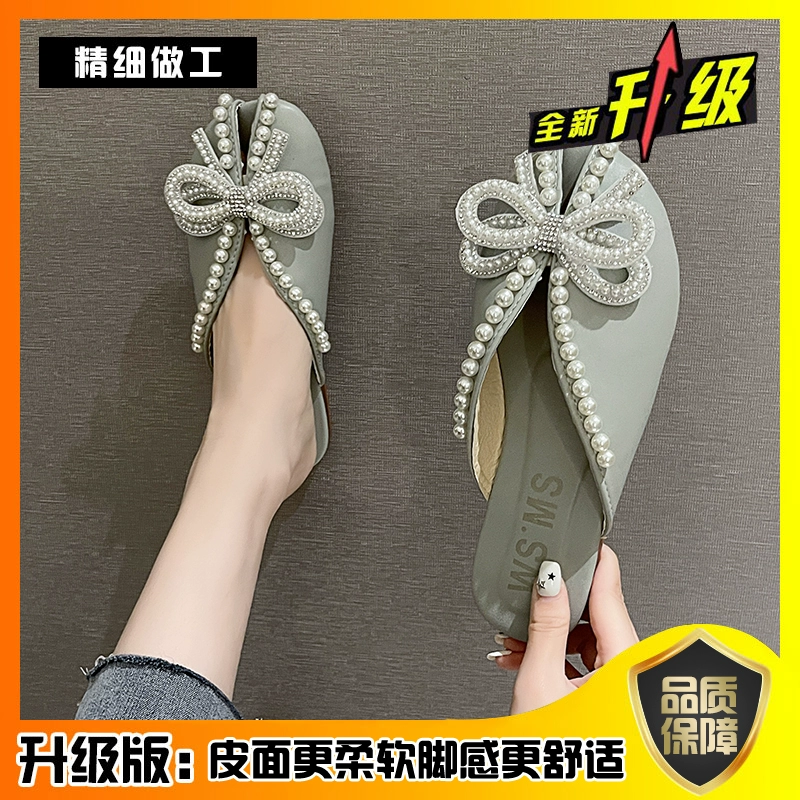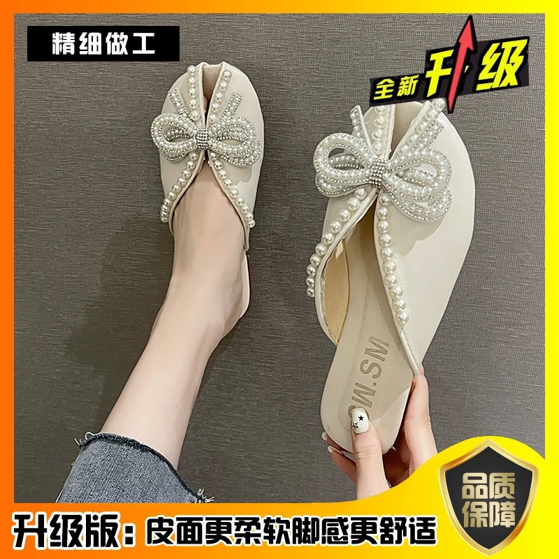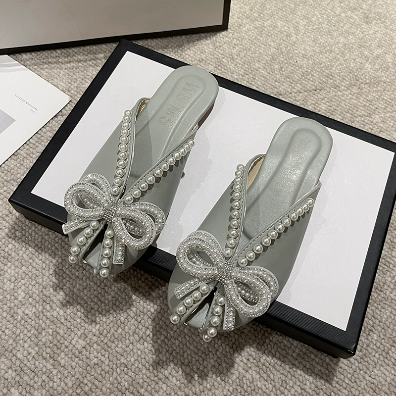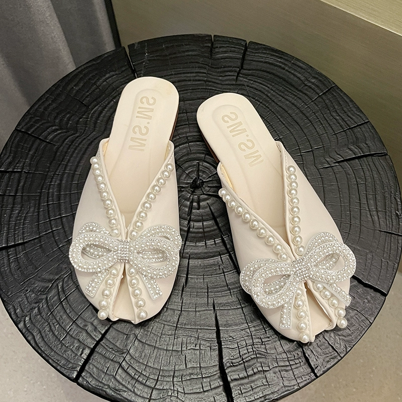 | nameOriginal | Summer flat French pearl bow fish mouth half slippers |