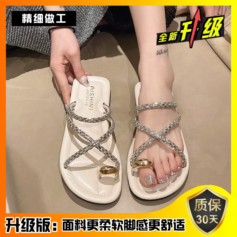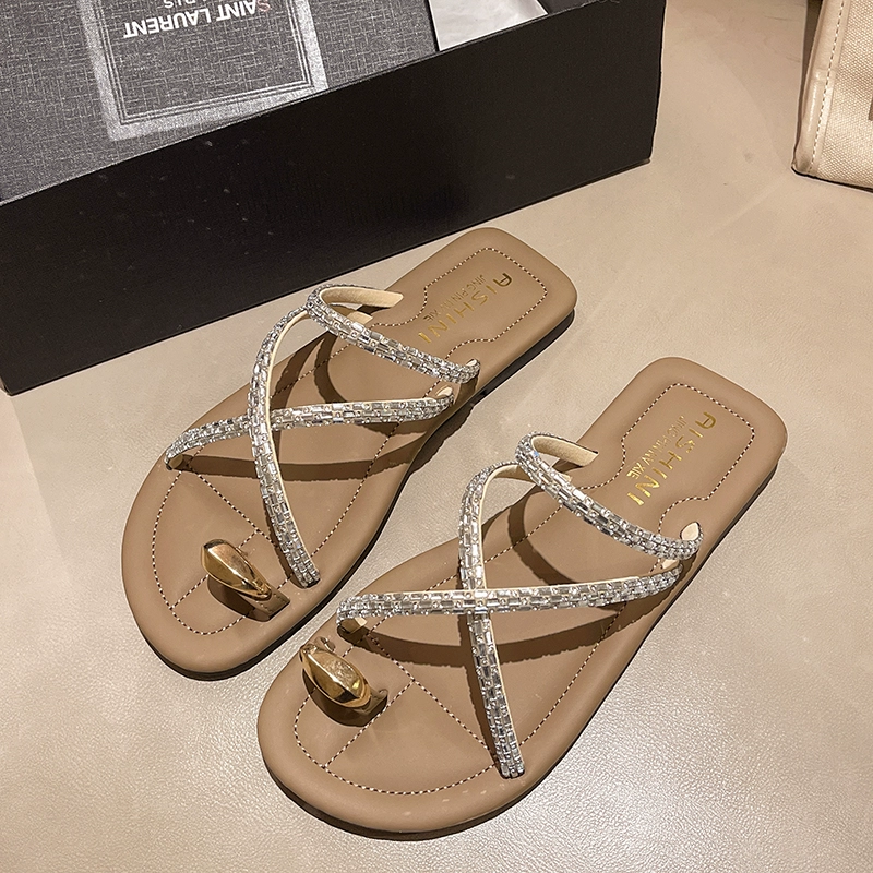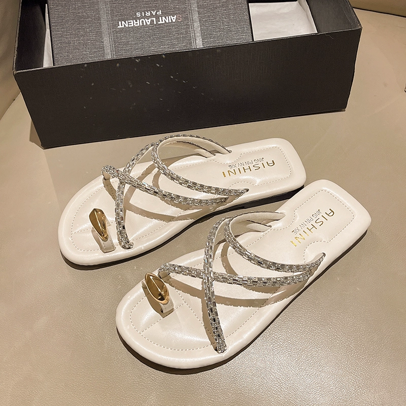 | nameOriginal | Summer flat toe fashionable and versatile seaside rhinestone slippers |