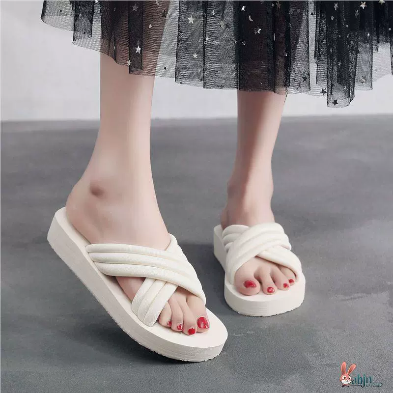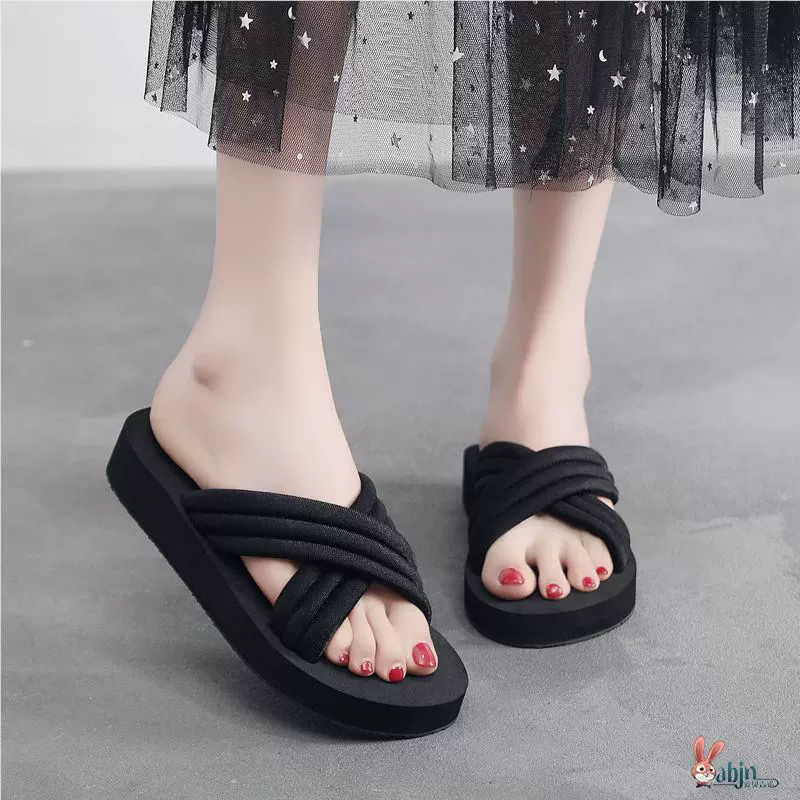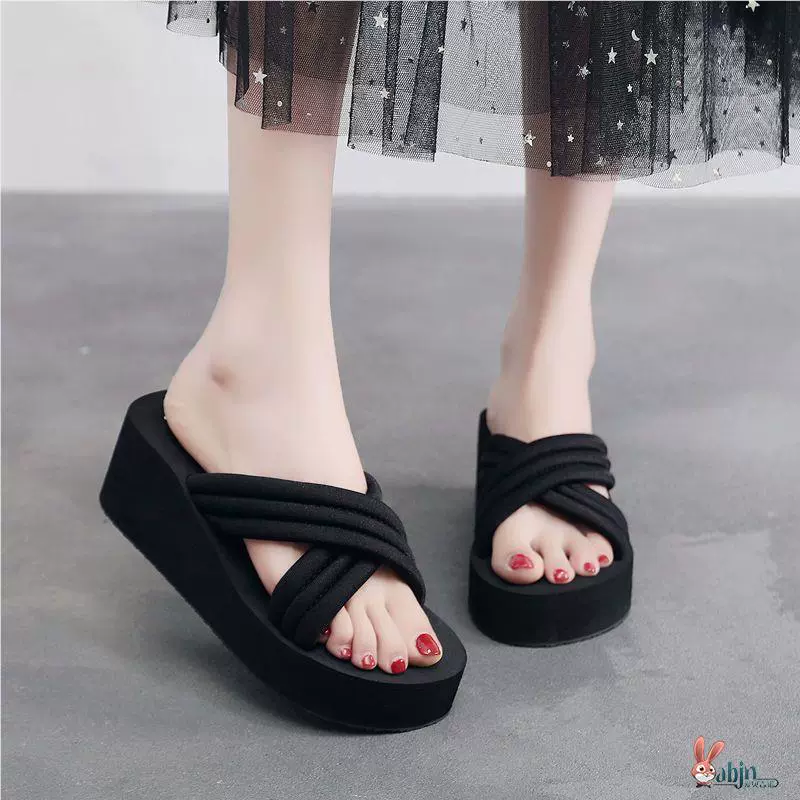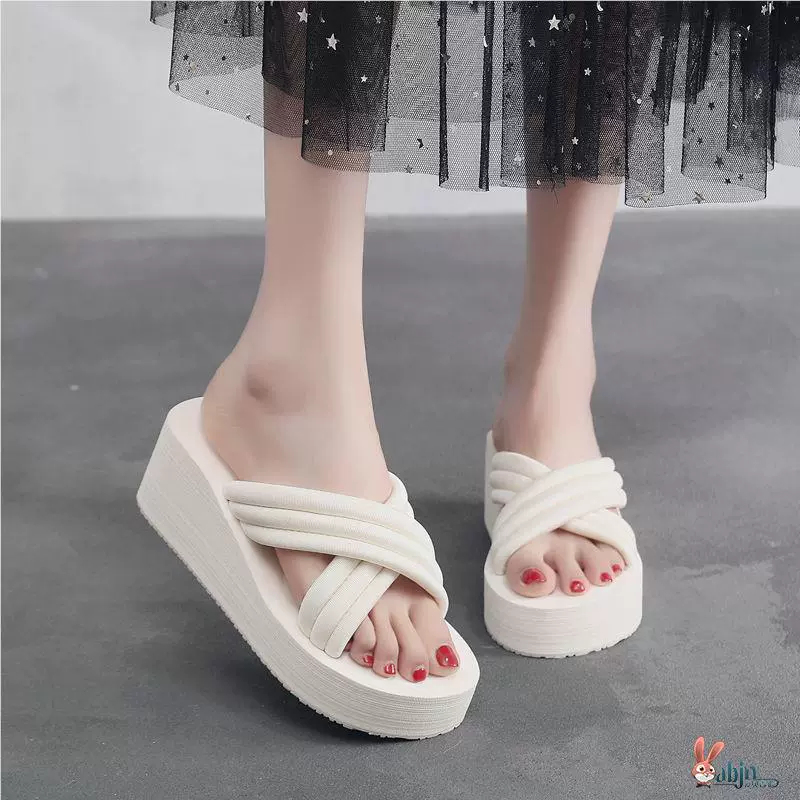 Summer flip-flops, fashionable seaside wedge-heeled thick-soled beach shoes