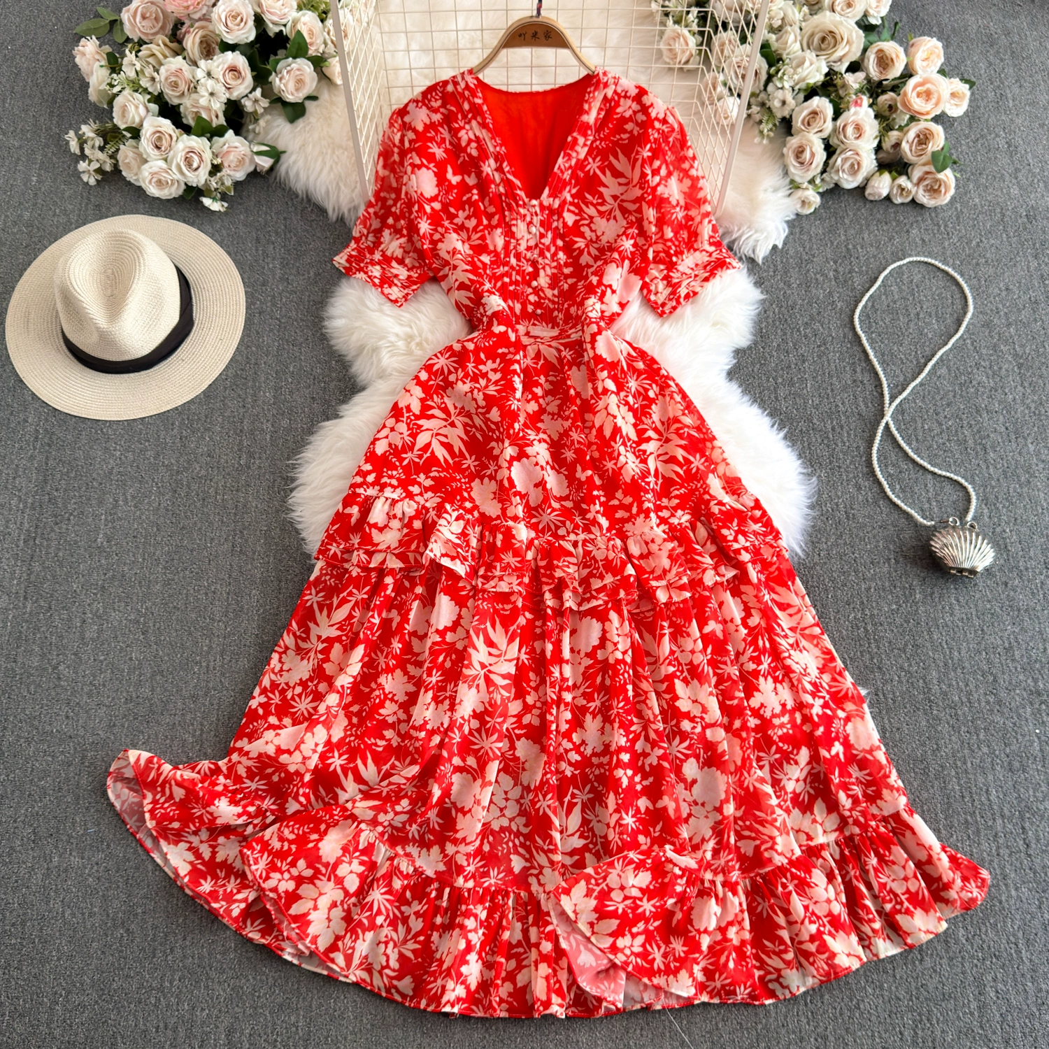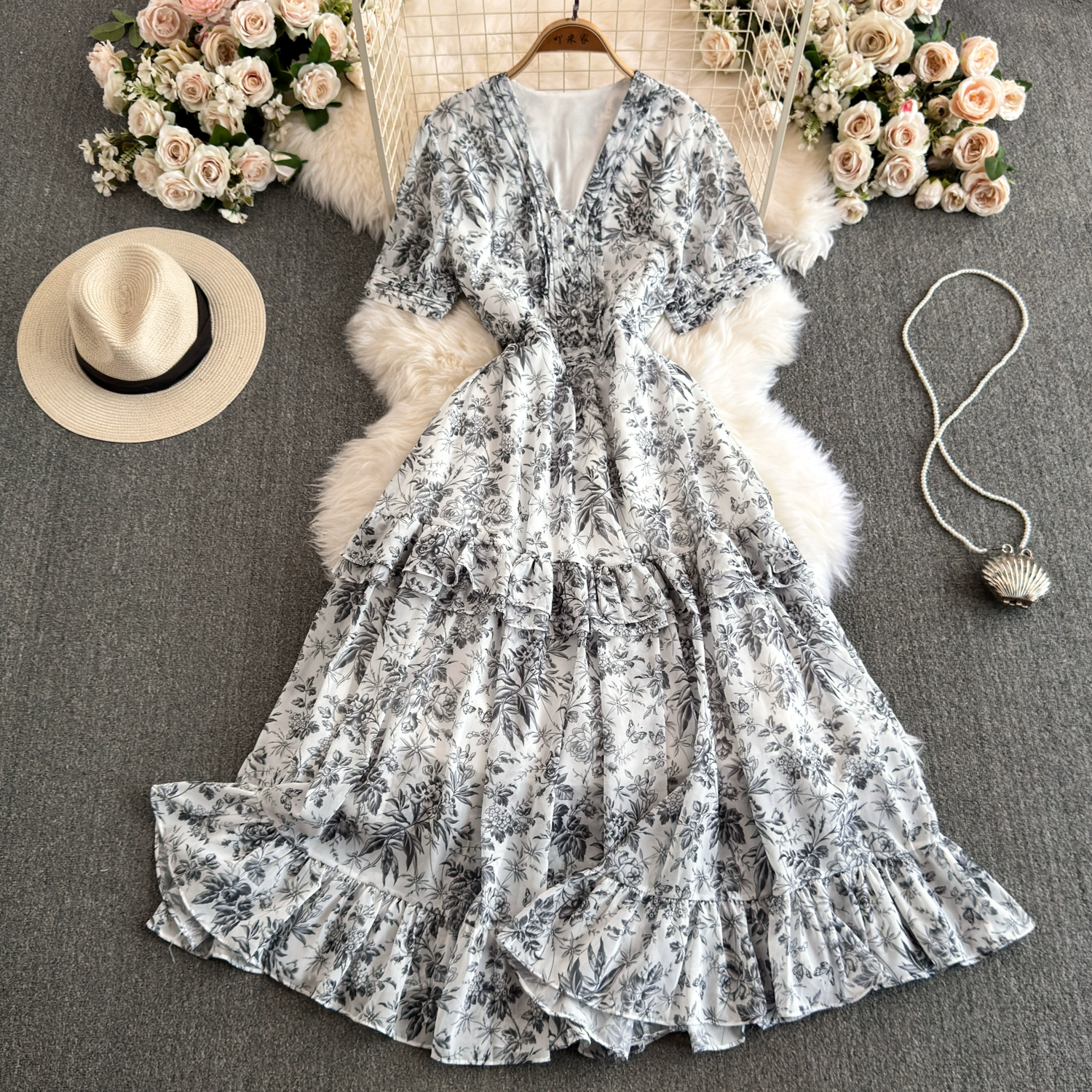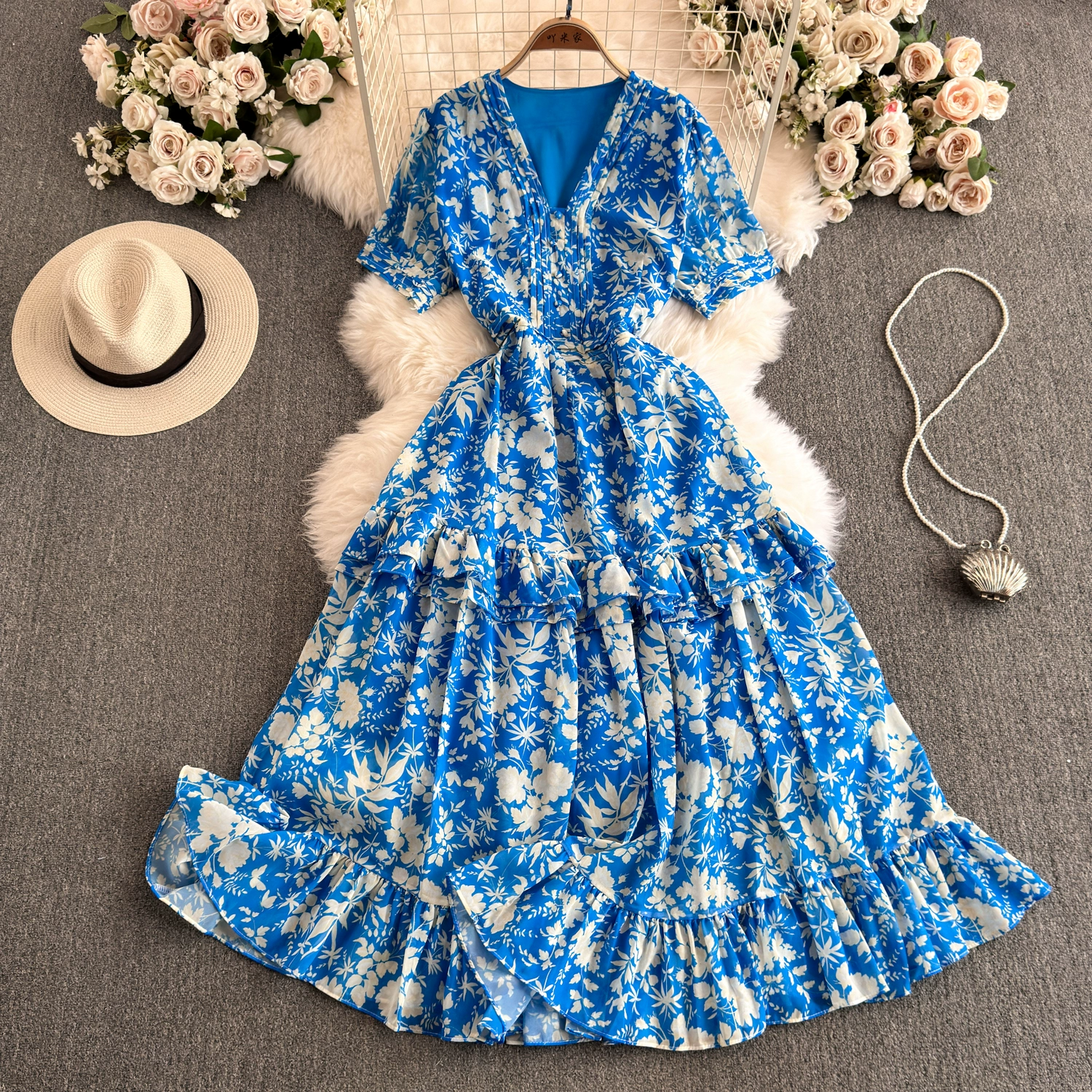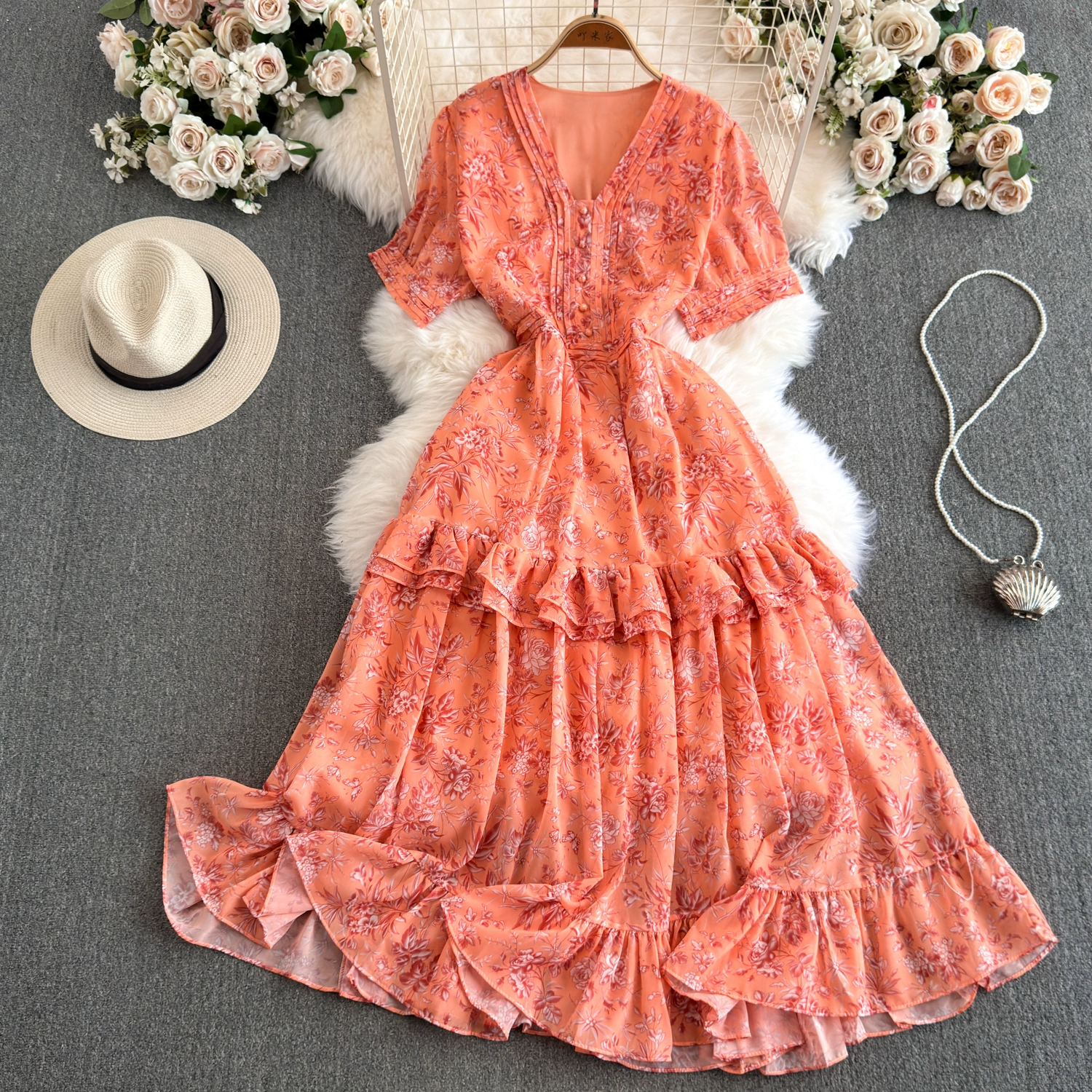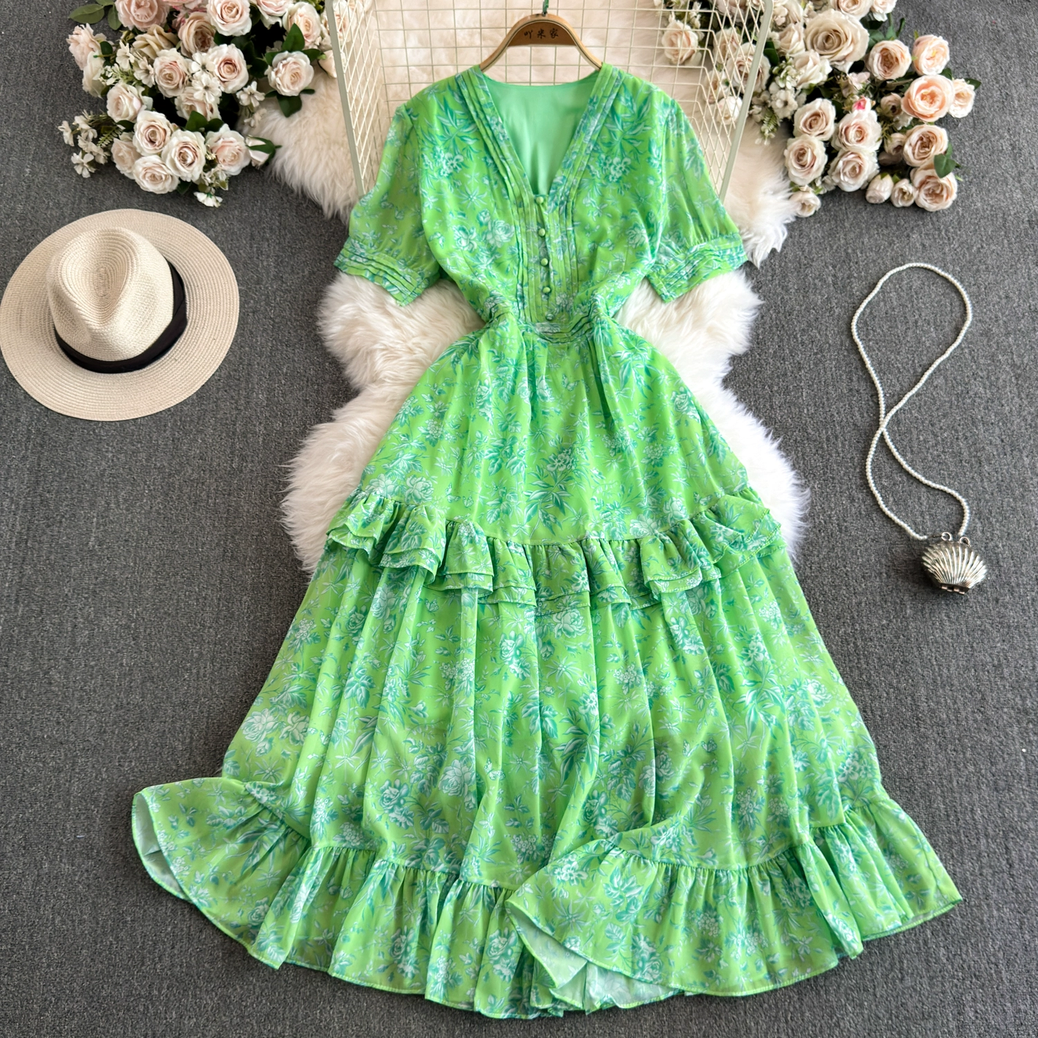 Summer floral dress, tea break, French atmosphere, waist slimming, sweet holiday style dress, forest fairy dress