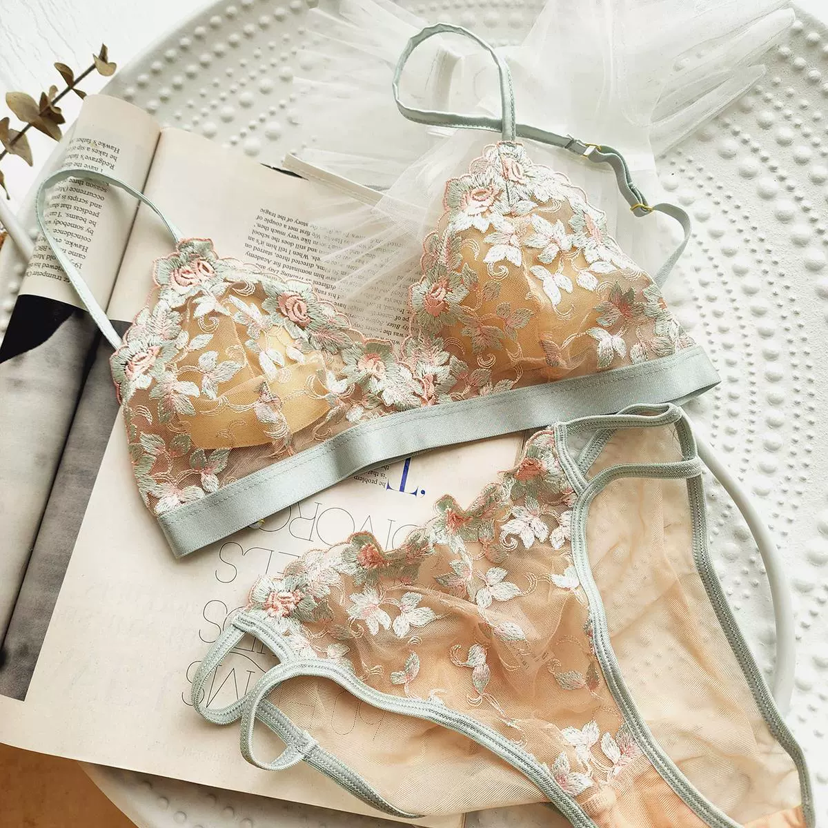 | nameOriginal | Summer floral embroidered lace underwear for women French small breast ultra-thin sexy bra without wire bra set |