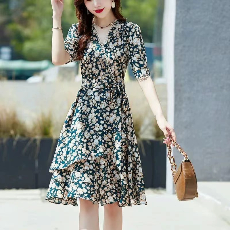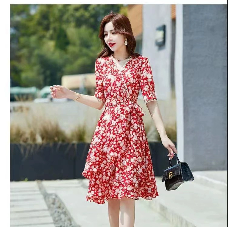 | nameOriginal | Summer floral temperament waist slimming chiffon dress |