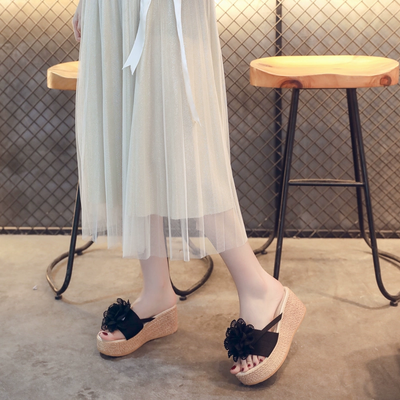 | nameOriginal | Summer Flower Casual Fairy Style Heightened Wedge Slippers |