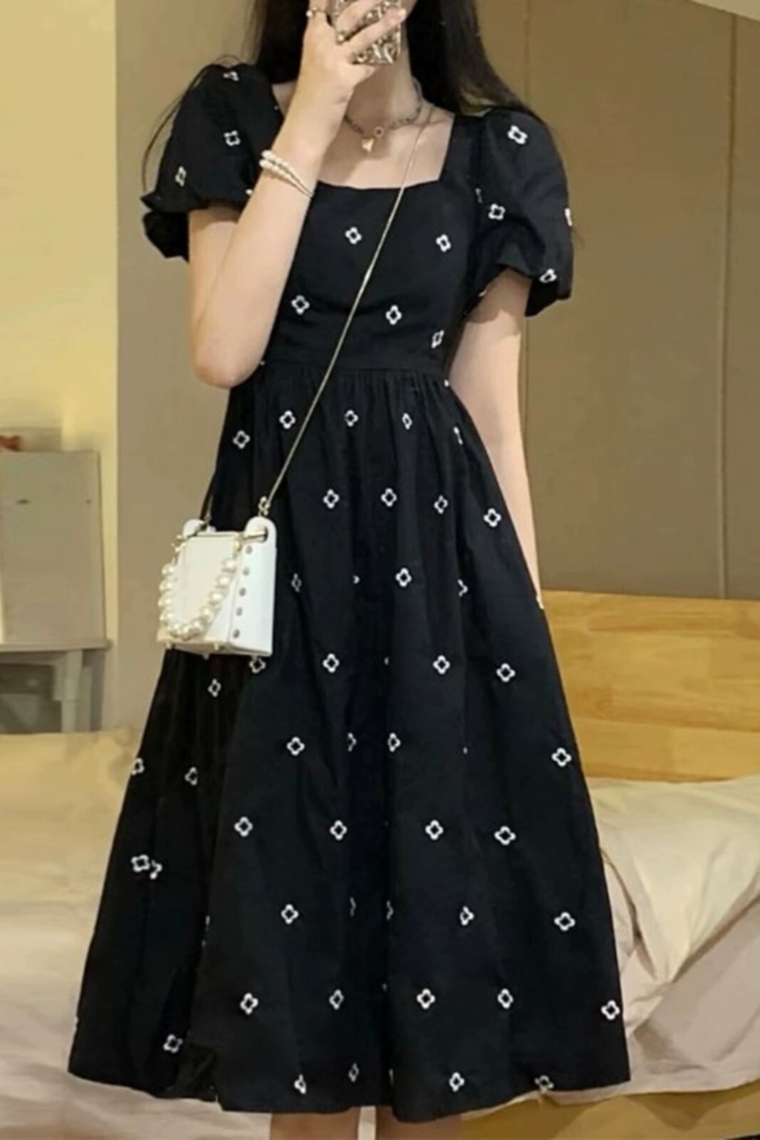 | nameOriginal | Summer French black fat mm short-sleeved floral dress |