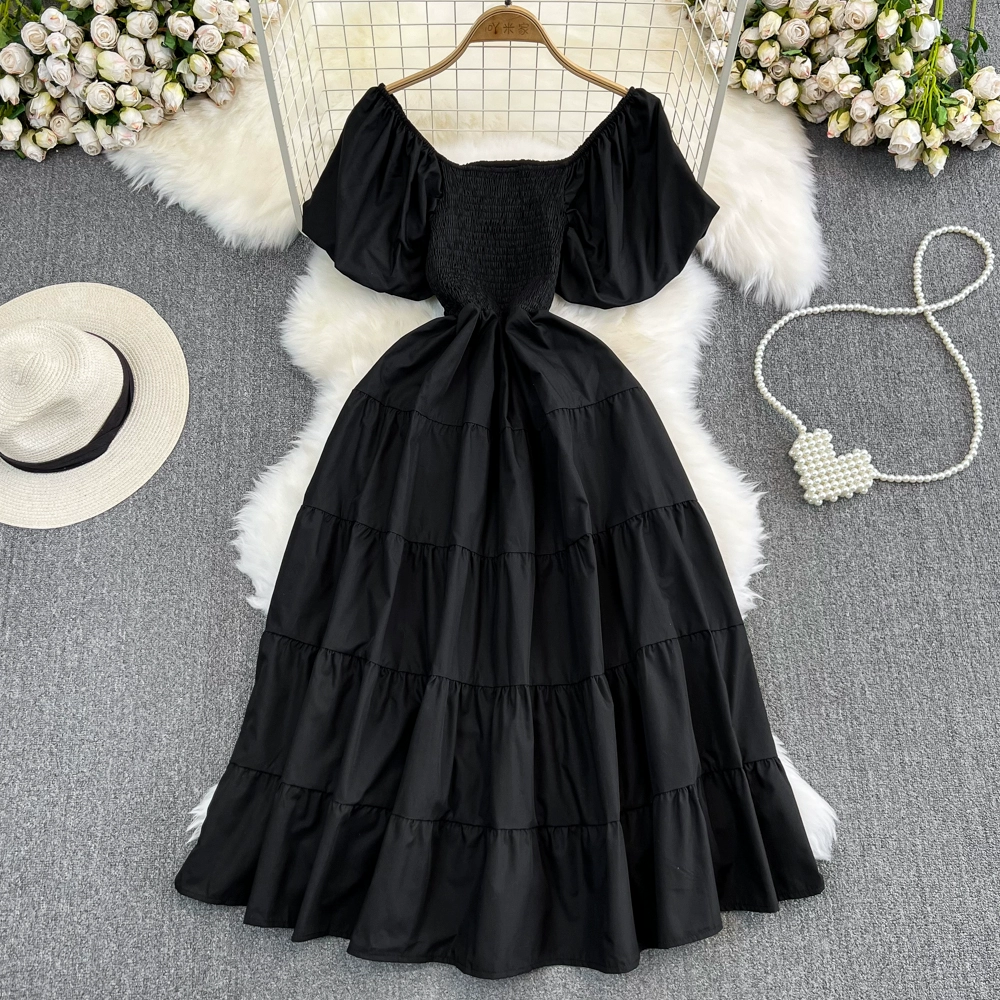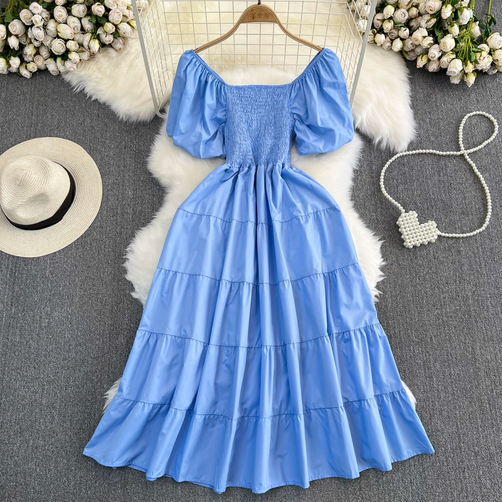 | nameOriginal | Summer French bubble a-line dress with wide hem and short sleeves |