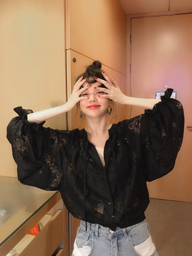 | nameOriginal | Summer French chic women's v-neck puff sleeves crocheted lace |