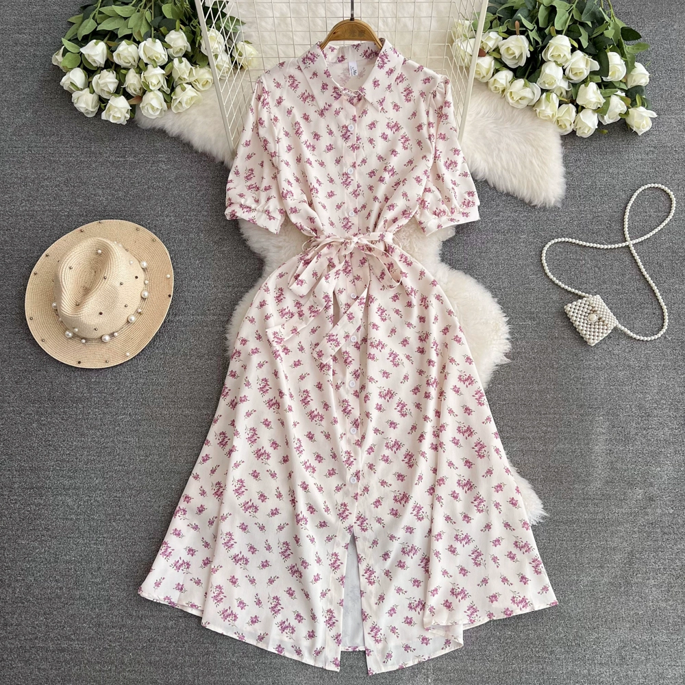 | nameOriginal | Summer French fashion small fresh temperament lapel puff short-sleeved waist slimming A-line slit floral dress |
